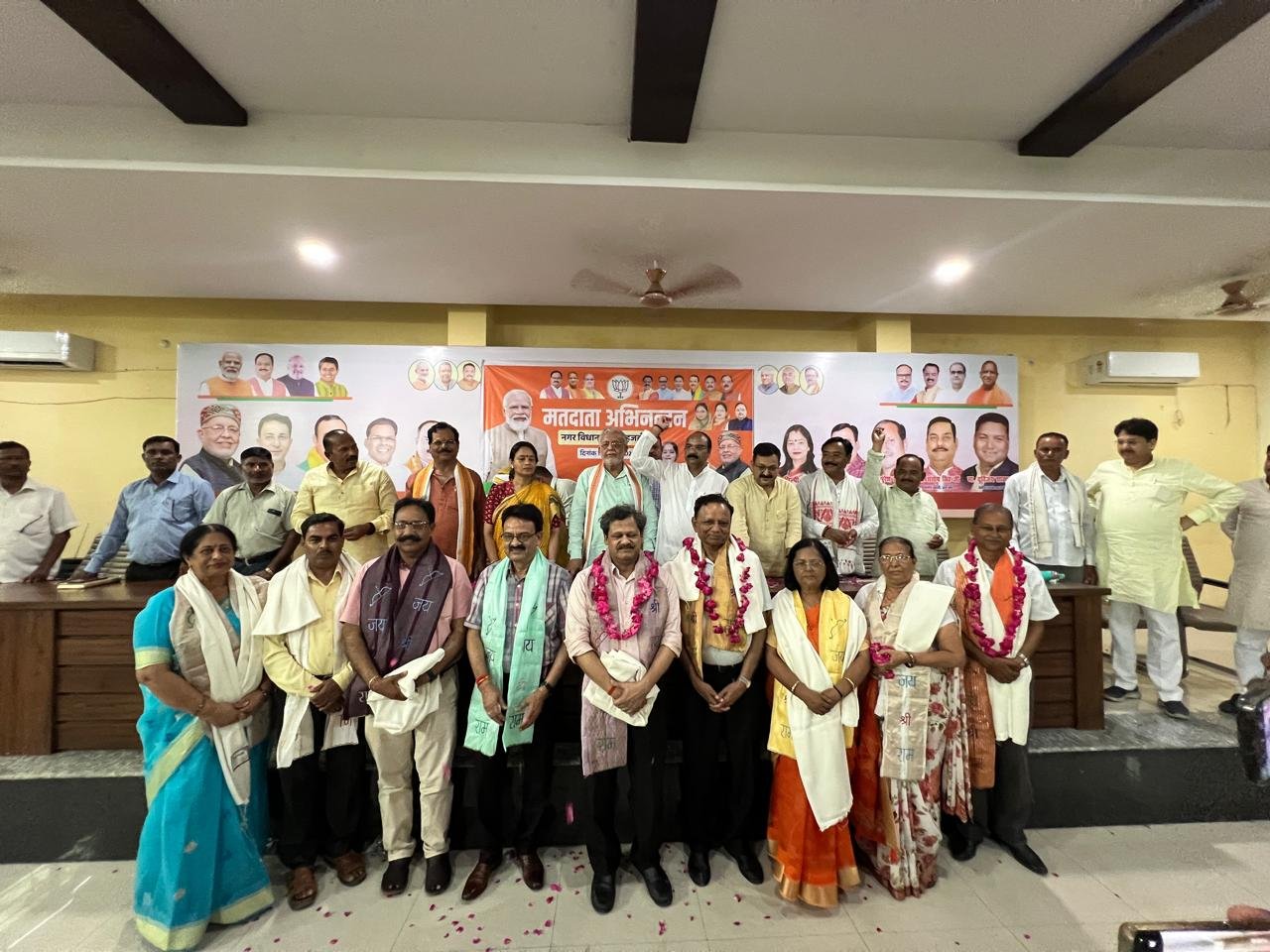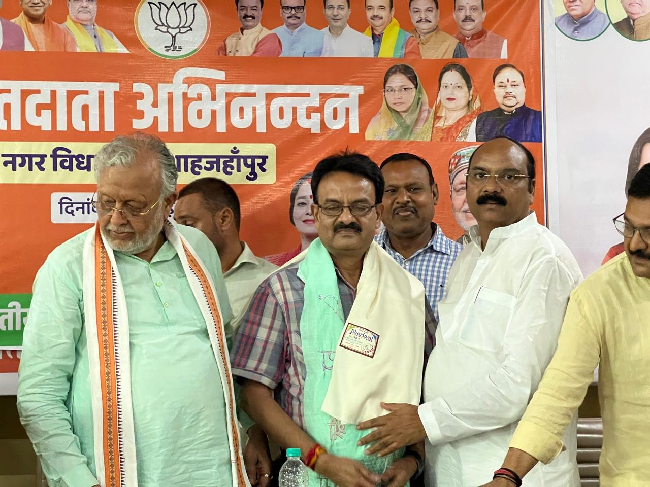शाहजहांपुर हुए लोकसभा चुनाव में जिले की जनता ने अरुण सागर को दूसरी बार भारी मतों से जीत दिलाकर सांसद बनाया है। उसके बाद से लगातार पार्टी ने जिले की जनता, पदाधिकारियों और कार्यकर्ताओं का आभार जताने के लिए मतदाता अभिनंदन कार्यक्रम कर रही है। शुक्रवार को नगर और ददरौल विधानसभा का संयुक्त रूप से मतदाता अभिनंदन कार्यक्रम का आयोजन जिला पार्टी कार्यालय पर किया गया। कार्यक्रम में मुख्य अतिथि सुरेश कुमार खन्ना और सांसद अरुण सागर का फूल माला पहनाकर पदाधिकारियों और कार्यकर्ताओं ने जोरदार स्वागत किया। इसके अलावा कटरा विधानसभा के खुदागंज ब्लाक सभागार और जलालाबाद विधानसभा के बरसाना मैरिज लाॅन में मतदात अभिनंदन कार्यक्रम का आयोजन किया गया। यहां भाजपा सांसद अरूण सागर ने पहुंचकर पदाधिकारियों, कार्यकर्ताओं और जनता का आभार जताया है।