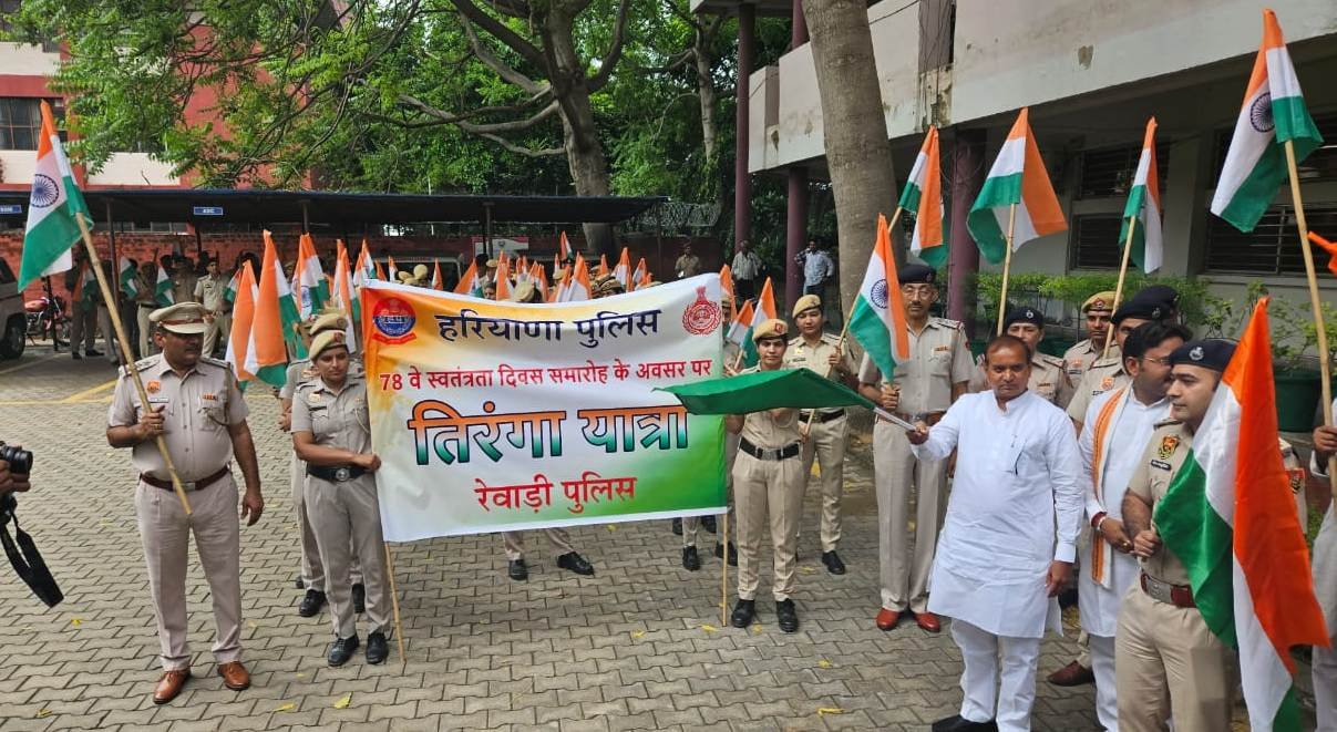 देश के लिए अपना सर्वोच्च बलिदान देने वाले वीर शहीदों व स्वतंत्रता सेनानियों की शहादत को नमन व वंदन करने के लिए जिला मुख्यालय पर पटौदी के विधायक सत्यप्रकाश जरावता के नेतृत्व में तिरंगा यात्रा निकाली गई, जिसमें जिला रेवाड़ी पुलिस के अधिकारियों व  कर्मचारियों ने हाथों मे तिरंगा झंडा लेकर जिला सचिवालय से बाल भवन (शिव चौक) तक भागीदारी करते हुए देश के वीर शहीदों को अपनी भावभीनी श्रद्धांजलि अर्पित की। तिरंगा यात्रा के दौरान विधायक ने विभिन्न चौराहों पर लगी महान विभूतियों की प्रतिमाओं के समक्ष शीश नवाकर नमन किया। जिला में पहुचने पर एसपी गौरव राजपुरोहित ने विशिष्ट जनों का स्वागत करते हुए कहा कि राष्ट्रीय एकता की दिशा में तिरंगा यात्रा के माध्यम से जागरूकता का अहम कदम है।