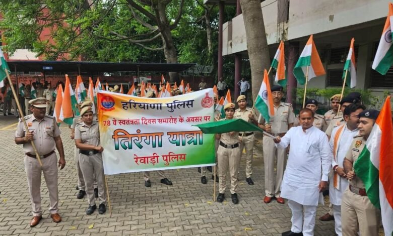 पुलिस अधीक्षक रेवाड़ी गौरव राजपुरोहित ने कहा कि हर घर तिरंगा अभियान एक जन आंदोलन है और प्रत्येक देशवासी को इससे जुडऩा चाहिए। उन्होंने बताया कि जिला में हर्षोल्लास व उत्साह के साथ तिरंगा यात्रा का आयोजन किया जा रहा हैं। हर व्यक्ति के अंदर देशभक्ति की भावना जागृत करने के उद्देश्य से हर घर तिरंगा अभियान के तहत घरों की छतों, शिक्षण संस्थानों, अस्पतालों, औद्योगिक इकाइयों व सरकारी भवनों पर तिरंगा फहराया जा रहा है। उन्होंने कहा कि देश के हर घर पर तिरंगे झंडे के एक साथ नजर आने से राष्ट्रीय एकता के साथ-साथ सामाजिक सद्भावना और अधिक मजबूत होगी । उन्होंने कहा कि इस अभियान में विशेषकर युवाओं की अधिक से अधिक भागीदारी हो, ताकि समाज में राष्ट्र के प्रति एक नया जोश नजर आए। इस अवसर पर उप पुलिस अधीक्षक मुख्यालय रेवाड़ी डा. रविंदर सिंह , इंचार्ज सुरक्षा शाखा निरीक्षक सुरेश कुमार सहित जिला पुलिस के अन्य कर्मचारीगण मौजूद रहे।