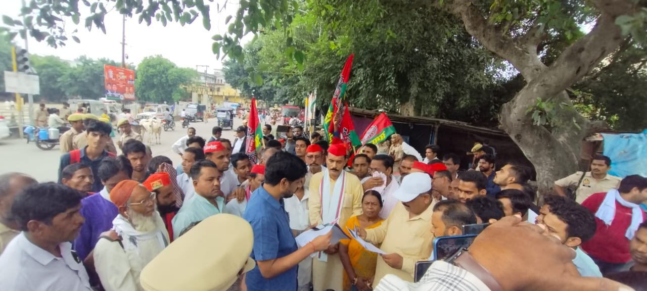 सपा जिलाध्यक्ष तनवीर खान के नेतृत्व में सपाइयों ने किया प्रदर्शन