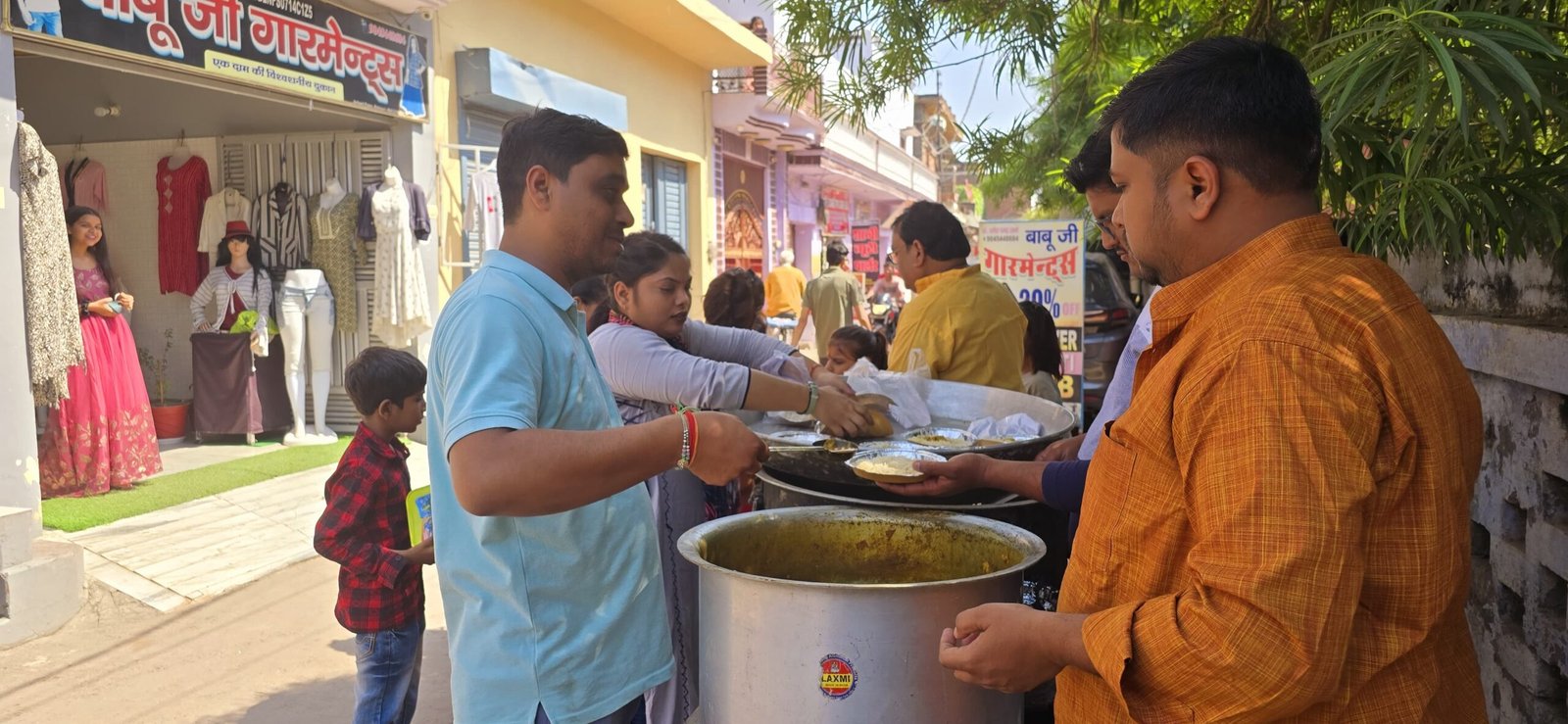 नगर में आज जगह-जगह भण्डारे का आयोजन हुआ।
