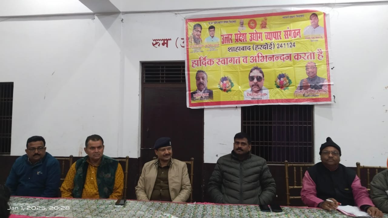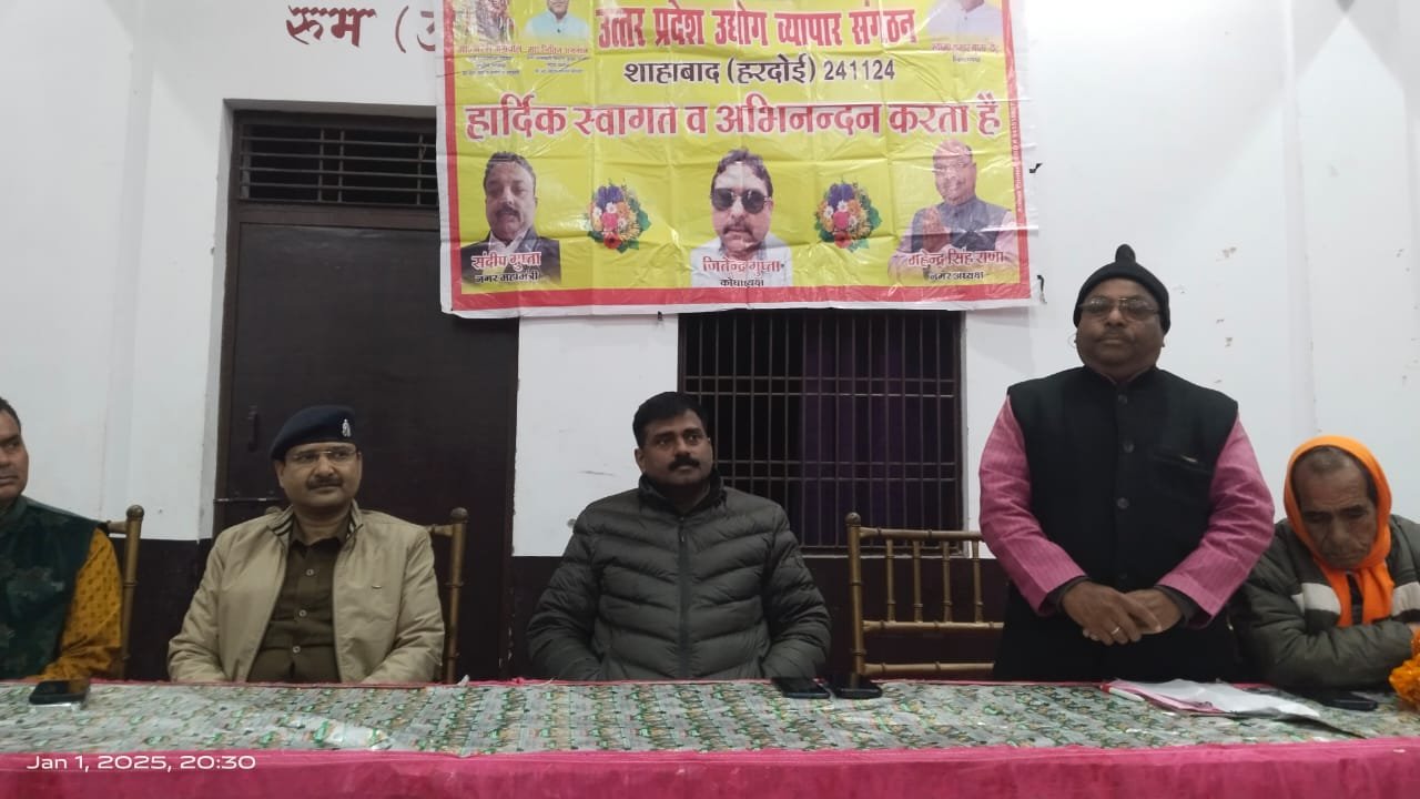 उत्तर प्रदेश उधोग व्यापार संगठन शाहाबाद हरदोई गोल्डन मेरिज लान में COसाहव व कोतवाली प्रभारी शाहाबाद व उत्तर प्रदेश उधोग व्यापार संगठन के सभी पदाधिकारियों ने नूतन नव वर्ष पर कार्यक्रम आयोजित किया गया शाहाबाद की समस्याओं को लेकर व्यापारियों व अधिकारियों के बीच वार्ता हुई COसाहव व कोतवाली प्रभारी की वात का सभी पदाधिकारियों ने समर्थन किया और सभी पदाधिकारियों ने केक काटा ओर नूतन नव वर्ष की शुभकामनाओं के साथ नूतन वर्ष की शुरुआत की गई अध्यक्ष महेन्द्र सिंह राणा गुप्ता व उपाध्यक्ष सुनील गुप्ता व दिनेश कुमार व नीरज नरूला व अनिल राठौर व रामू राठौर महा मन्त्री सन्दीप गुप्ता व मन्त्री विशाल गुप्ता व पीयूष गुप्ता अनूप राठौर व ज्ञानेश गुप्ता गप्पू राजन राठौर व कोषाध्यक्ष जितेन्द्र कुमार गुप्ता व प्रिशगुप्ता राजीव सोनी सम्मानित सदस्य आलोक गुप्ता अर्जुन गुप्ता व संजय गुप्ता संजीव कुमार राकेश राठौर कुलदीप गुप्ता राम निवास गुप्ता रमेश चंद्र मिश्रा व नितिन गुप्ता रामसेवक गुप्ता बिभू गुप्ता निशान्त गुप्ता अविशेक एडवोकेट व बहीद अख्तर व सुयव अनवर खान व भा जा पा कार्यालय प्रभारी सुभाष चन्द्र रस्तोगी के साथ सभी पदाधिकारी व व्यापारी बन्धु मोजूद रहे