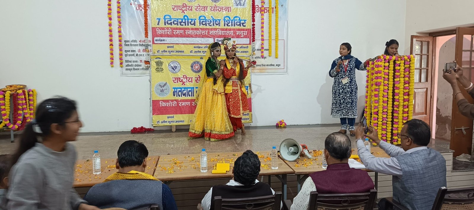 किशोरी रमण स्नातकोत्तर महाविद्यालय, मथुरा की राष्ट्रीय सेवा योजना की दोनों इकाइयों के संयुक्त तत्वाधान में 07 दिवसीय विशेष शिविर के अंतिम दिवस भव्य सांस्कृतिक समारोह के साथ संपन्न