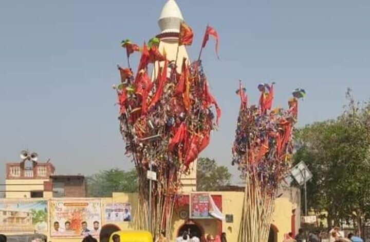 शेरों वाली माता के मंदिर पर आषाढ़ मास में हजारों भक्तगण नेजा बड़ी धूमधाम के साथ चढ़ाने आते हैं !