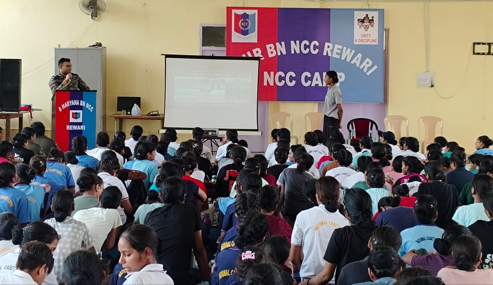 रेवाड़ी। राजकीय प्रौद्योगिकी संस्थान लिसाना में चल रहे एनसीसी वार्षिक प्रशिक्षण शिविर के चौथे दिन सेना में महिलाओं के लिए उपलब्ध अवसरों पर विशेष व्याख्यान का आयोजन किया गया तथा कैडेट्स को हथियार प्रशिक्षण दिया गया।