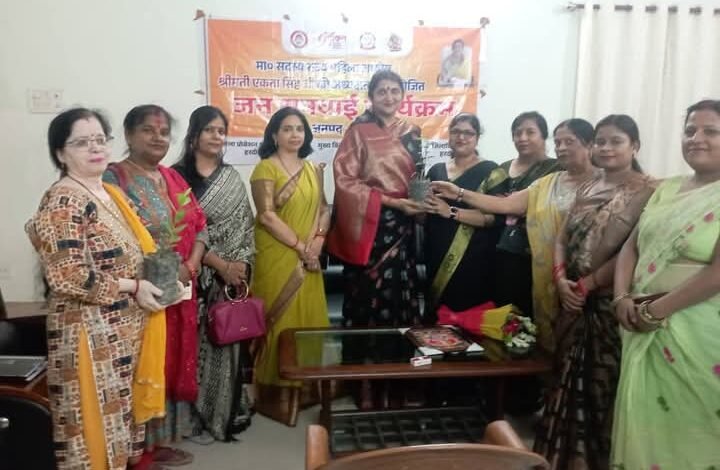 हरदोई-आज जय भोले सेवा समिति के पदाधिकारीयों ने हरदोई स्थित पीडब्ल्यूडी गेस्ट हाउस में लगे हुए महिला आयोग के जनसुनवाई केंद्र में जाकर महिला आयोग की सदस्य श्रीमती एकता सिंह जी को स्मृति चिन्ह व वृक्ष देकर सम्मानित किया।समिति की राष्ट्रीय सचिव पूजा गुप्ता जी ने एकता सिंह जी को बताया कि हमारी समिति 5 जून से लेकर 31 अक्टूबर तक वृक्षारोपण का कार्यक्रम करती है तथा प्रत्येक माह शाहाबाद के संकटा देवी मंदिर में निशुल्क नेत्र शिविर का आयोजन भी किया जाता है इसी के साथ-साथ हम लोग महिला सशक्तिकरण एवं बच्चों के विकास के लिए भी कार्य करते हैं एकता सिंह जी ने कहा कि आपकी समिति के द्वारा बहुत ही अच्छे कार्य किया जा रहे हैं और आपकी टीम से मिलकर हमको बहुत ही खुशी काअनुभव हो रहा है और आपके द्वारा दिए गए वृक्ष को हम लोग उचित स्थान पर रोपित करेंगे। इस अवसर पर भाजपा नेत्री अनुराधा मिश्रा, पुलिस क्षेत्राधिकारी,प्रोवेशन अधिकारी व उनका स्टाफ, महिला थानाप्रभारी हेमलता जी एवं पुष्पा चौरसिया, मुस्कान सिंह, अवंतिका तिवारी, कमल किशोर गुप्ता, रश्मि शुक्ला, रीता श्रीवास्तव, मधु कश्यप, अनीता गुप्ता ,कंचन गुप्ता, वंदना गुप्ता आदि समिति के पदाधिकारीगण उपस्थित रहे।