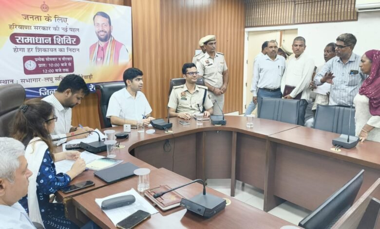 रेवाड़ी। हरियाणा सरकार की पहल पर जिला प्रशासन की ओर से जिला मुख्यालय सहित उपमंडल स्तर पर प्रत्येक सोमवार व गुरुवार को लगाए जा रहे समाधान शिविर जिला के आमजन के लिए महत्वपूर्ण साबित हो रहे हैं। समाधान शिविर में नागरिकों को एक ही स्थान पर अपनी शिकायतों व समस्याओं का समाधान करवाने का अवसर मिल रहा है। गुरुवार को डीसी अभिषेक मीणा ने लघु सचिवालय स्थित सभागार में आयोजित समाधान शिविर की अध्यक्षता करते हुए जन शिकायतों का मौके पर ही समाधान करवाया।