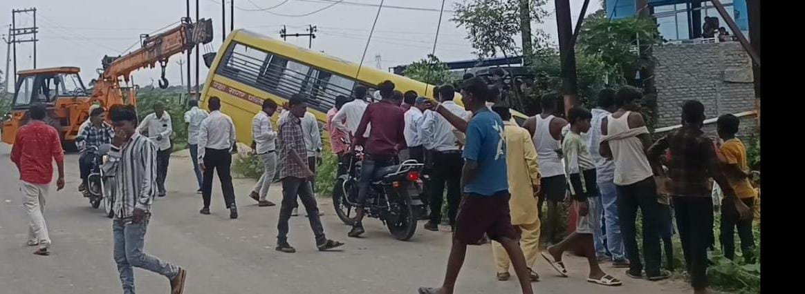 जानकारी के अनुसार थाना क्षेत्र अंतर्गत ग्राम दिहुली स्थित शिक्षा सागर इंटर कॉलेज की बस आज दोपहर स्कूल की छुट्टी के बाद बच्चों को लेकर ग्राम उखाड़ की तरफ गई थी । जहां से बच्चों को घर छोड़कर वापस दिहुलीआ रही थी! जैसे ही दिहुली मैं विद्युत फीटर के पास पहुंची उसी समय सामने से आ रही एक ईको कार को बचाने के प्रयास में बस अनियंत्रित होकर विद्युत फीटर के पास खड़ी वेगनार कार में टकरा गई! वेगनार कार सहित बस रोड किनारे गड्ढे में जा गिरी गनीमत थी कि बस में बच्चे नहीं बैठे थे! बस के चालक और परिचालक दोनों बाल बाल बच गए किसी को कोई खरोच नहीं आई इस दुर्घटना में वैगनार कार और बस को कोई हानि नहीं हो पाई। सूचना जैसे ही स्कूल प्रबंधन को लगी तो उन्होंने तुरंत क्रेन मशीन को भेज कर बस और वेगनार कार को खंदक से बाहर सुरक्षित निकलवाया।