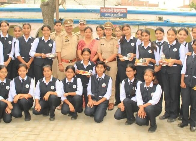 छिबरामऊ: छात्राओं ने कोतवाली में पुलिस कर्मियों को बांधी राखियां।