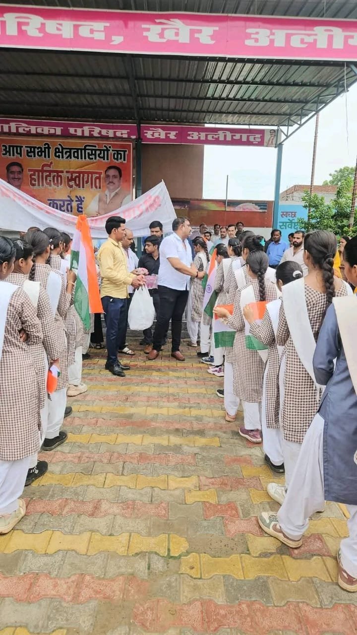 नगर पालिका परिषद् खैर क्षेत्र में श्री नरेंद्र भारद्वाज गुरु जी के खुशीराम महाविद्यालय द्वारा आयोजित भव्य तिरंगा यात्रा में सहभागिता कर, नवोदित राष्ट्रभक्तों—हमारे प्यारे बच्चों—का उत्साहवर्धन करने का सौभाग्य प्राप्त हुआ।