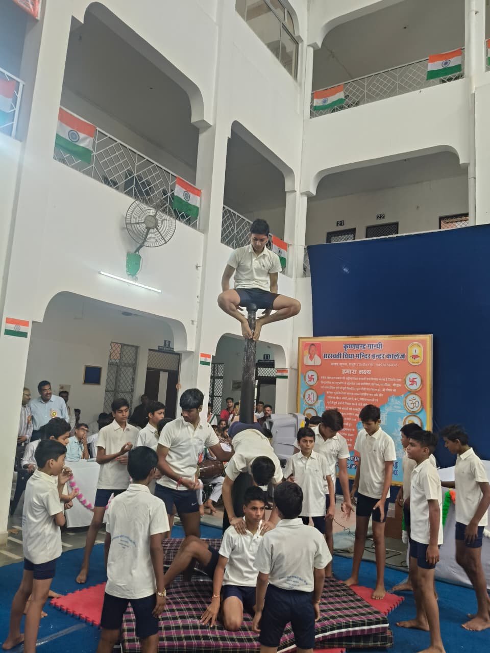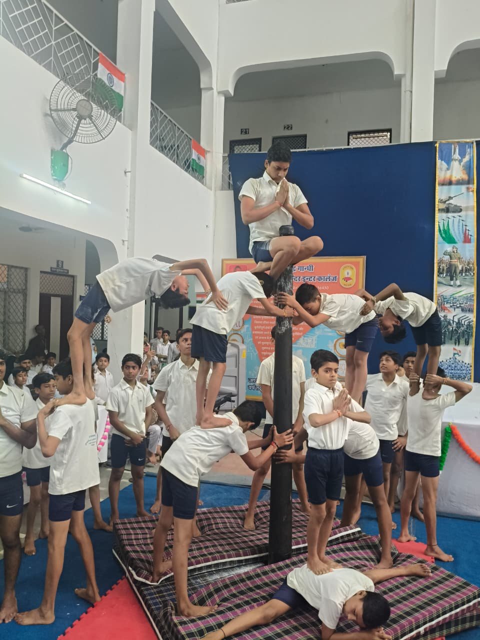विद्यालय की बहनों ने राष्ट्रभक्ति गीत पर सुंदर नृत्य प्रस्तुति दी। भैयाओं ने मलखम्भ पर साहसिक प्रदर्शन किया। भैया माधव ने दिल दिया है, जान भी देंगे ऐ वतन तेरे लिए गीत से माहौल को भावुक बना दिया।