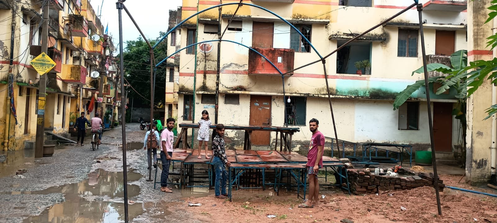भक्तों का उत्साह जारी भारी बरसात में भी की जा रही है तैयारी