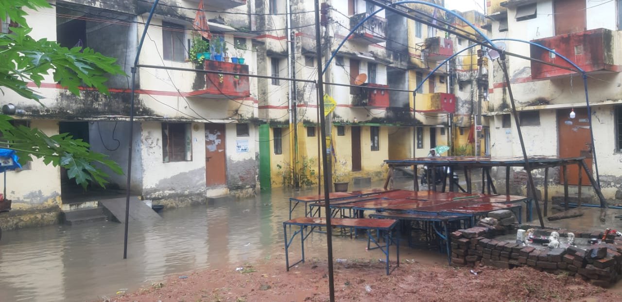 कल से हो रही लगातार भारी बरसात के कारण श्री गणेश महोत्सव पंडाल हुआ जलमग्न