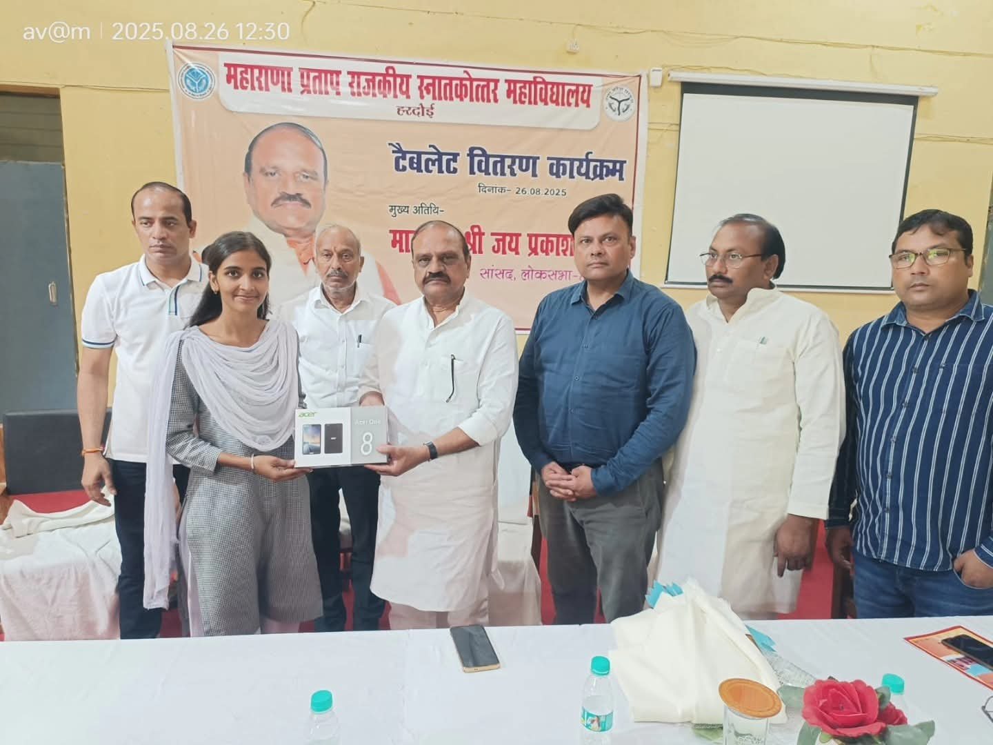 हरदोई। आज स्वामी विवेकानंद युवा तकनीकी सशक्तिकरण योजना के अंतर्गत महाराणा प्रताप राजकीय स्नातकोत्तर महाविद्यालय में आयोजित टेबलेट वितरण कार्यक्रम में मुख्य अतिथि के रूप में सांसद जयप्रकाश उपस्थित रहे।
