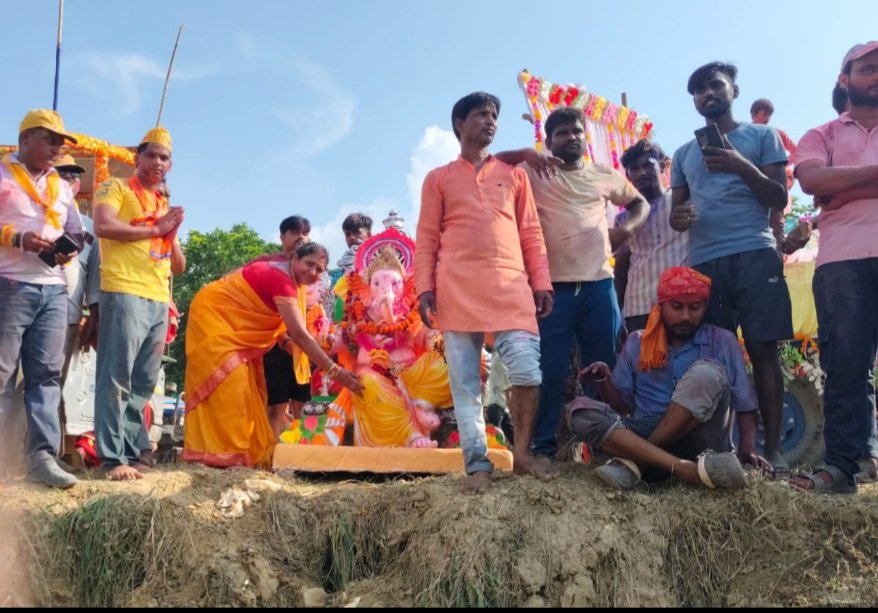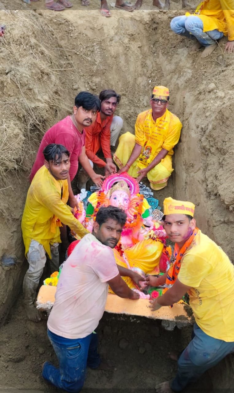 छिबरामऊ कन्नौज जय बालाजी सेवा समिति इंदिरा आवास कॉलोनी फर्रुखाबाद रोड छिबरामऊ के द्वारा श्री गणेश महोत्सव कार्यक्रम 27 अगस्त को बड़ी धूमधाम के साथ प्रारंभ हुआ था तथा विभिन्न सांस्कृतिक कार्यक्रमों एवं धार्मिक अनुष्ठानों के साथ संपूर्ण हुए इस कार्यक्रम का 6 सितंबर को प्रातः 9:00 बजे हवन पूजन के साथ विघ्नहर्ता को नम आंखों के साथ विदा किया विशाल विसर्जन यात्रा इंदिरा आवास कॉलोनी से चलकर फर्रुखाबाद चौराहे से पश्चिमी बाईपास मुख्य बाजार होती हुई मां कालका देवी मंदिर से आगे ककरारी तालाब पहुंची वहां भगवान श्री गणेश जी को भू विसर्जित किया गया सभी भक्तों की आंखें नम थी यहां तक कि छोटे-छोटे नन्हे मुन्ने बच्चे जिन्होंने प्रतिदिन भगवान को प्रसन्न करने के लिए संस्कृति कार्यक्रम प्रस्तुत किए थे उनकी आंखों से आंसू चल रहे थे जोर-जोर से गणपति बप्पा मोरिया अगले बरस तू जल्दी आ के नारे लगा रहे थे तेज धूप होने के बावजूद भी भक्तों का उत्साह कम नहीं हो रहा था भारी गर्मी और तेज धूप में अबीर गुलाल उड़ाते हुए गाते बजाते झूमते हुए सभी भक्त मगन होकर विघ्नहर्ता को विदा करने के लिए ककरारी तालाब पहुंचे वहां पर आरती व पूजन के बाद भगवान श्री गणेश जी को भू विसर्जित किया गया इस अवसर पर कार्यक्रम के आयोजक सर्वेश कुमार तिवारी व समिति के सभी सदस्य प्रशांत त्रिपाठी हिरदेश अग्रवाल राजू गुप्ता पवन गुप्त पंकज मिश्रा रजनी सक्सेना अनामिका तिवारी मीना मिश्रा गीता कश्यप अनामिका अग्रवाल यशिका रानी राजेश कश्यप सूरज हरिओम मिश्रा स्पर्श तिवारी यश तिवारी लालू अजय नानू मनू गुप्ता सुनीता सोनल तनु सुमन शैलेश मिथिलेश शर्मा आरती पूजा प्रगति विनीता कनक काजल आदि सभी भक्त मौजूद रहे विघ्नहर्ता को विदा करने के बाद वापस आकर पंडाल में सभी को भोजन कराया गया कार्यक्रम की सफलता पर कार्यक्रम के आयोजक सर्वेश कुमार तिवारी ने सभी समिति के सदस्यों व भगवान श्री गणेश जी के भक्तों को शोभायात्रा में शामिल हुए सभी भक्तों को हृदय से आभार प्रकट किया और कहां यह कार्यक्रम आप सब की तन मन धन से सहयोग करने से ही भव्यता के साथ पूर्ण होता है आगे भी इसी तरह से सहयोग करने की अपील की एवं प्रसाद व भोजन वितरित किया भगवान श्री गणेश जी से अनजाने में हुई कमियों के लिए क्षमा याचना करते हुए अगले बरस जल्दी आने के लिए सभी ने मंगलमय कामना की