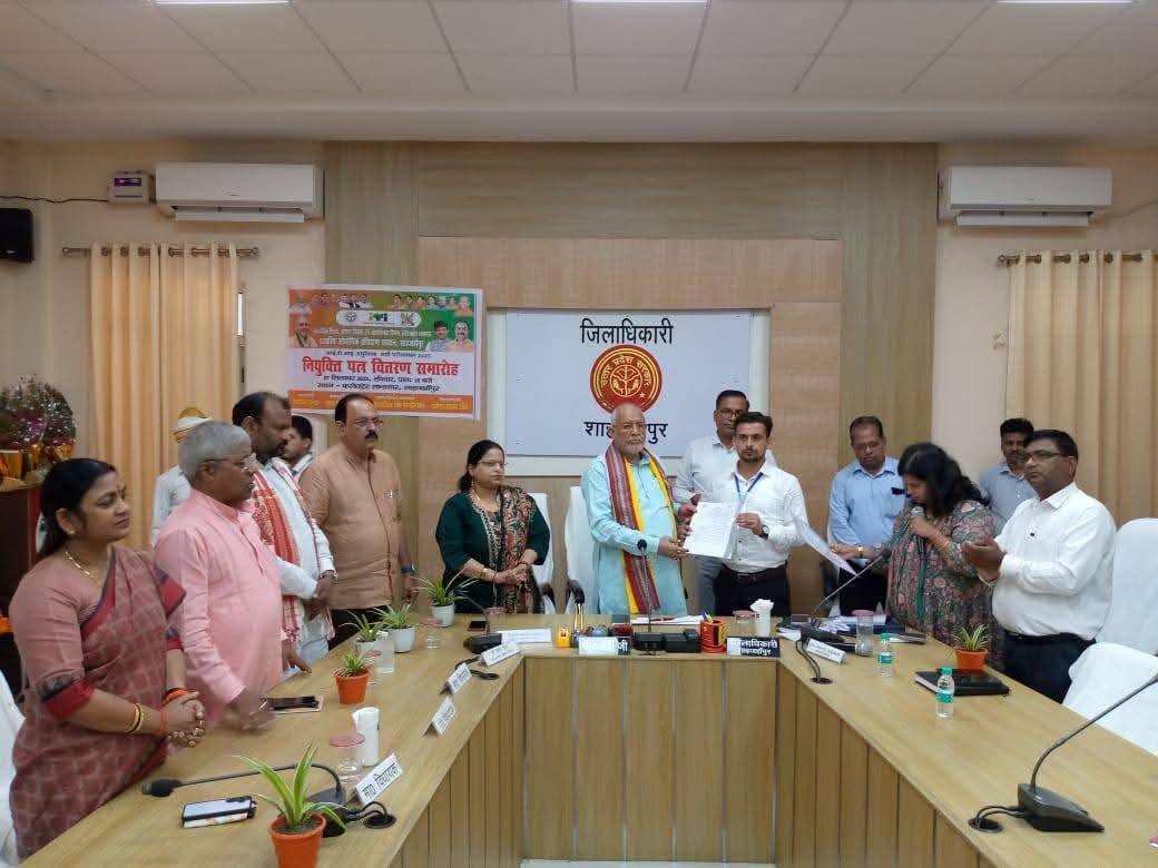 शाहजहांपुर । मुख्यमंत्री योगी आदित्यनाथ द्वारा उत्तर प्रदेश सरकार के अंतर्गत उत्तर प्रदेश अधीनस्थ सेवा चयन आयोग के माध्यम से विभिन्न व्यवसायों के लिए नवचयनित कुल 1,510 अनुदेशकों के नियुक्ति पत्र वितरण कार्यक्रम का सजीव प्रसारण उत्तर प्रदेश सरकार के वित्त एवं संसदीय कार्य मंत्री सुरेश कुमार खन्ना, जिला पंचायत अध्यक्ष ममता यादव, जिलाधिकारी धर्मेंद्र प्रताप सिंह, एमएलसी डॉ. सुधीर कुमार गुप्ता, जलालाबाद विधायक हरि प्रकाश वर्मा, पूवायां विधायक चेतराम तिलहर, सलोना विधायक कुशवाहा, महानगर अध्यक्ष शिल्पी गुप्ता एवं मुख्य विकास अधिकारी डॉ. अपराजिता सिंह की उपस्थिति में कलेक्ट्रेट सभागार, शाहजहांपुर में देखा गया।