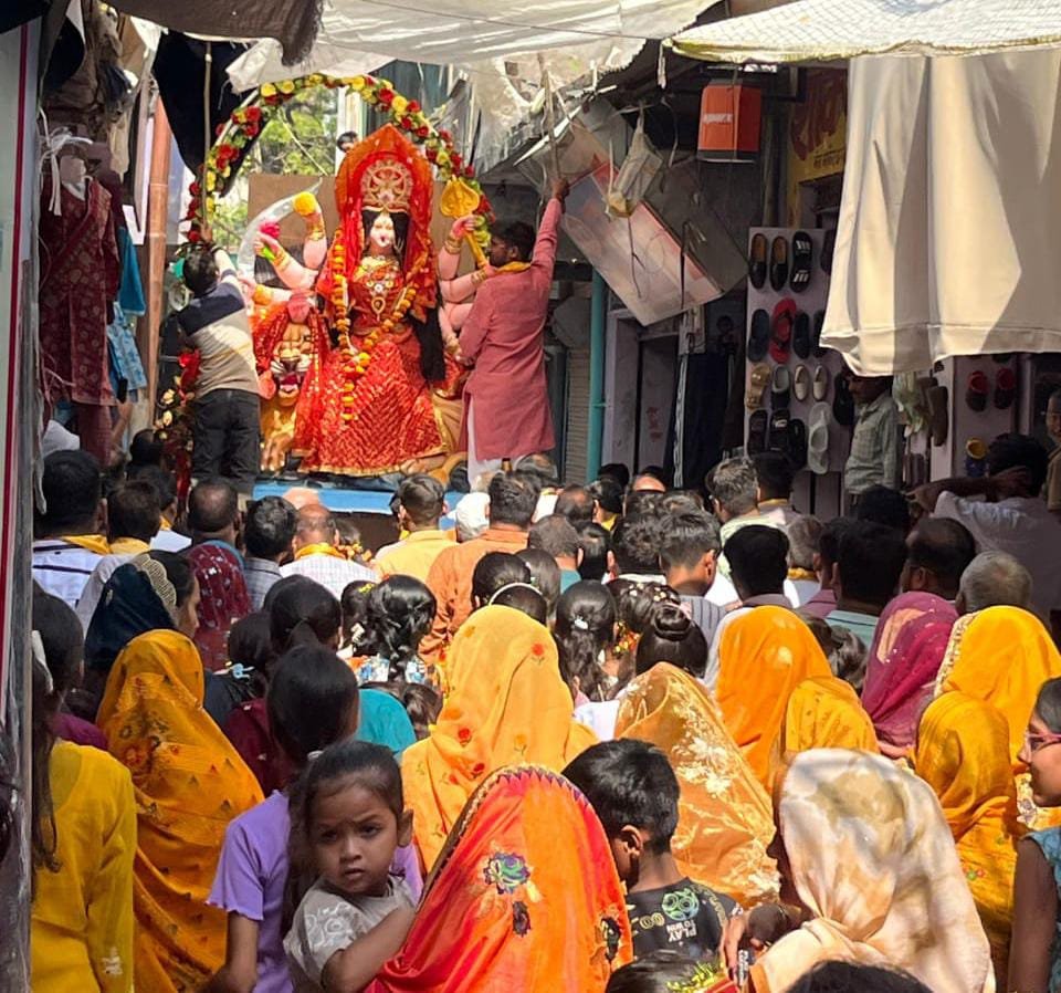 कंस मेला प्रांगण प्राचीन गणेश मंदिर से माता दुर्गा की विशाल शोभा यात्रा निकाली गई।