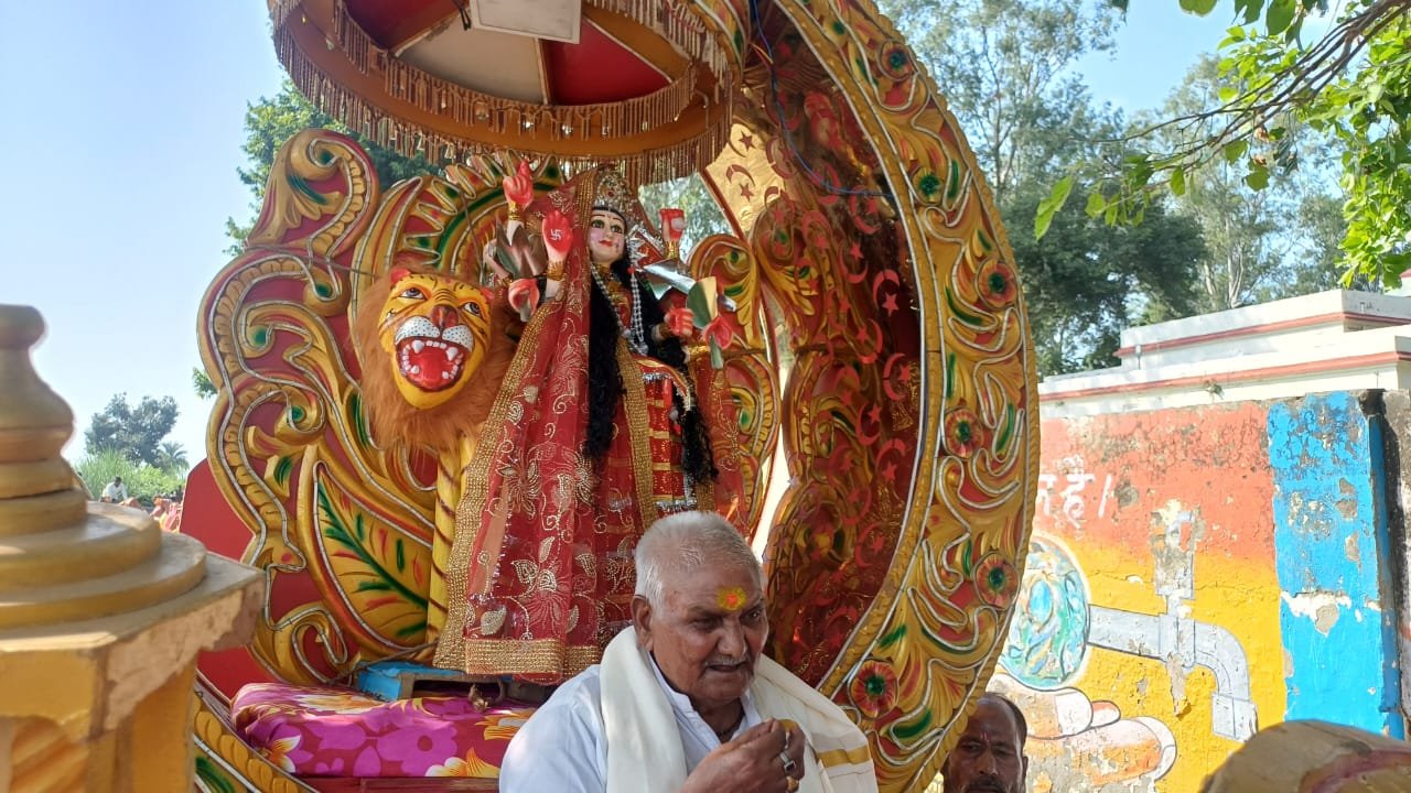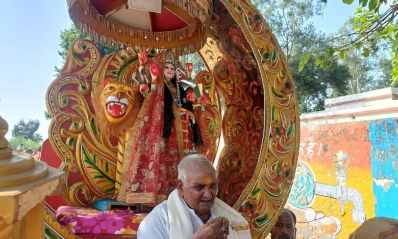 कस्बा घिरोर में श्रीमांता मंडल द्वारा निकाली गई मां दुर्गा की शोभायात्रा