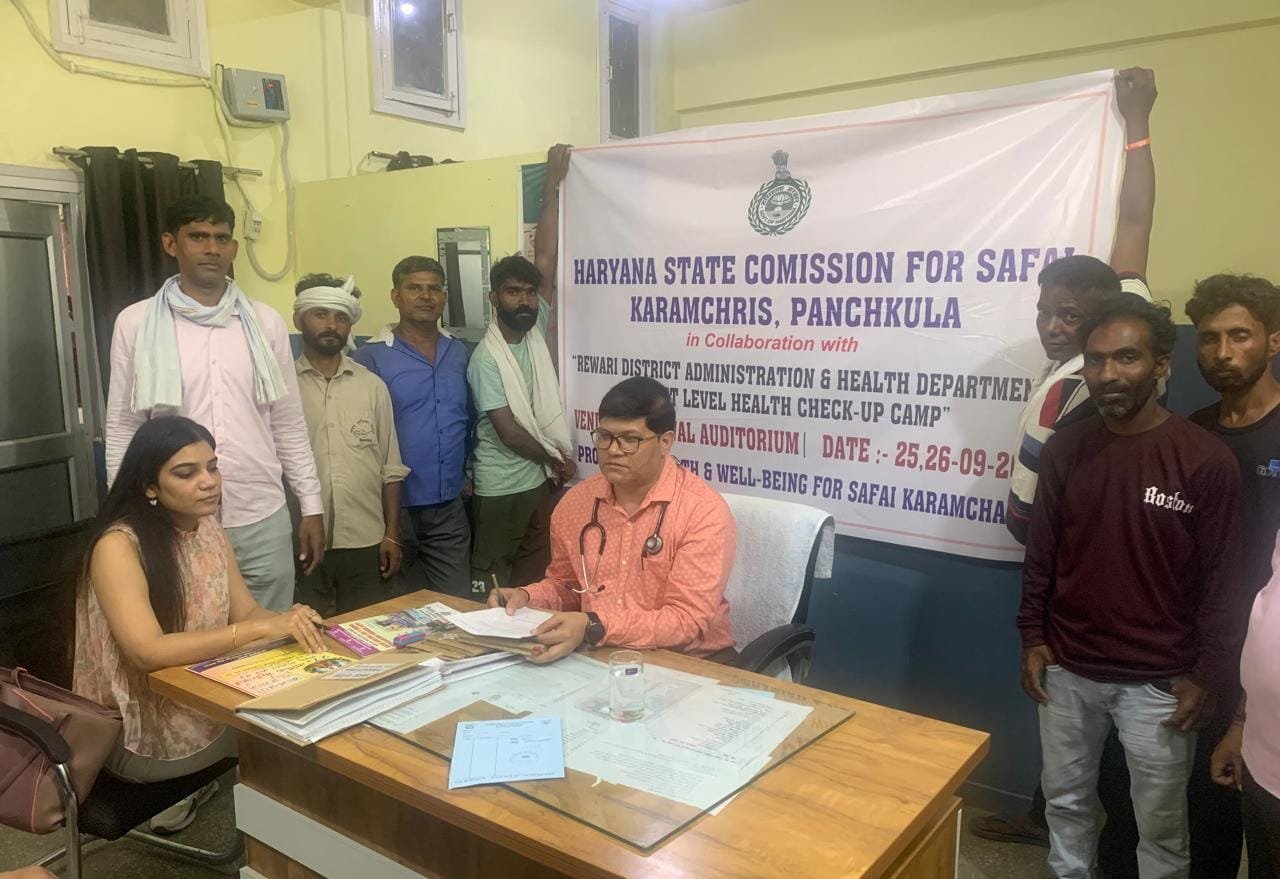 हरियाणा राज्य सफाई कर्मचारी आयोग द्वारा रेवाड़ी में लगाए गए स्वास्थ्य जांच शिविर