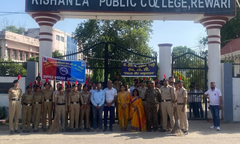 स्वच्छ भारत दिवस पर के.एल.पी कॉलेज रेवाड़ी में एनसीसी कैडेट्स ने किया श्रमदान