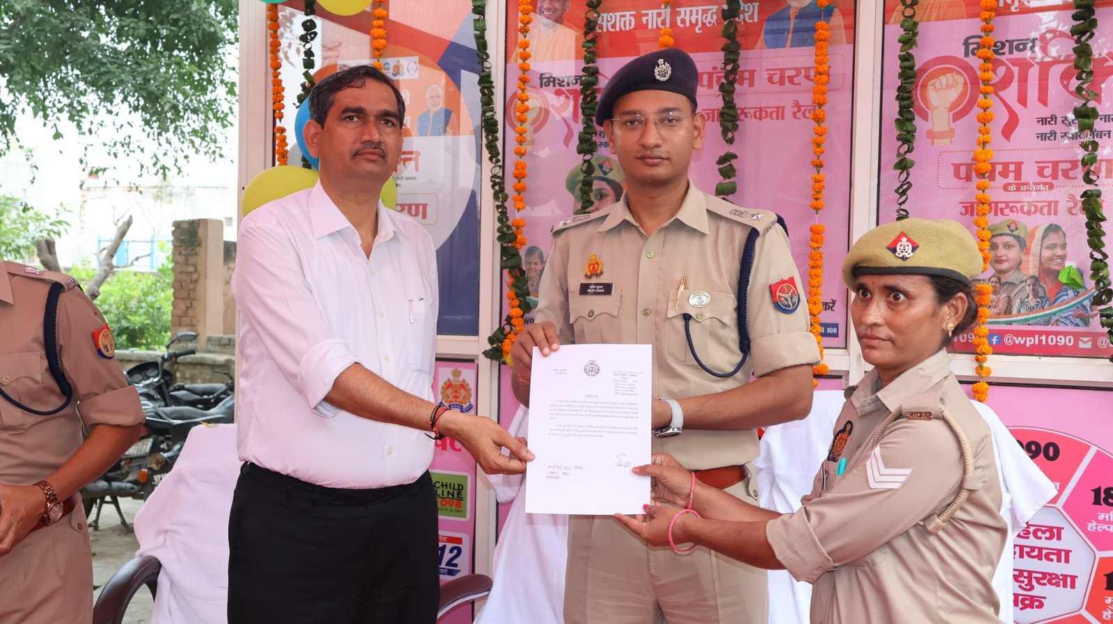 माननीय मुख्यमंत्री उ0प्र0 सरकार की महत्वाकांक्षी योजना “मिशन शक्ति” 5 के अन्तर्गत महिला सशक्तिकरण हेतु चलाए जा रहे अभियान में थाना दिवस के अवसर पर जिलाधिकारी चंद्र प्रकाश सिंह तथा वरिष्ठ पुलिस अधीक्षक श्लोक कुमार ने जन चौपाल लगाकर छात्राओं/बालिकाओं एवं महिलाओं को आत्मनिर्भर बनाने, बालिकाओं/छात्राओं एवं महिलाओं के साथ घटित होने वाले अपराधों पर प्रभावी रोकथाम एवं मिशन नारी सुरक्षा, नारी सम्मान, नारी स्वावलंबन के दृष्टिगत महिला सुरक्षा हेतु महत्वपूर्ण जानकारियां- जैसे विभिन्न हेल्पलाइन नम्बरों, महिला हेल्प डेस्क, एंटी रोमियो स्क्वायड, बाल श्रम उन्मूलन, शक्ति दीदी, यूपी-112, वूमेन पावर लाइन-1090 व आत्मरक्षा सम्बन्धी टिप्स एवं कल्याणकारी योजनाओं जैसे मुख्यमंत्री कन्या सुमंगला योजना, निराश्रित महिला पेंशन, उ0प्र0 राज्य ग्रामीण आजीविका मिशन, राष्ट्रीय पोषण मिशन, रानी लक्ष्मीबाई बाल एवं महिला सम्मान कोष, मुख्यमंत्री सामूहिक विवाह योजना, प्रधानमंत्री मातृ वन्दना योजना आदि के बारे में विस्तृत रूप से जानकारी दी।