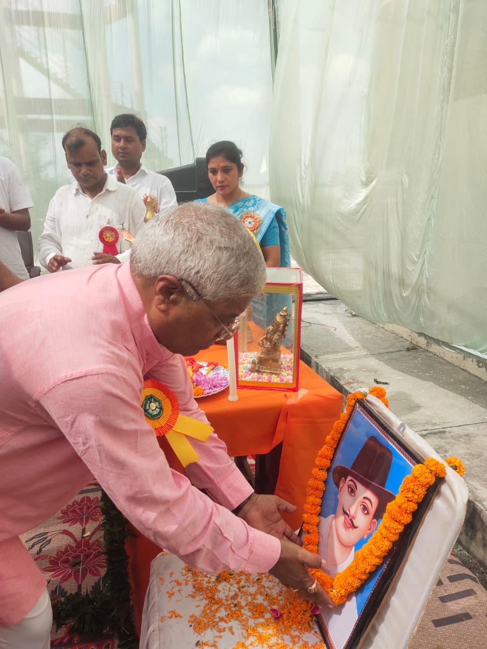 विधायक श्री चेतराम जी ने माँ शारदे के समक्ष दीप प्रज्जवलित कर व शहीद भगत सिंह जी की प्रतिमा पर पुष्पांजलि अर्पित कर कार्यक्रम का शुभारम्भ किया।