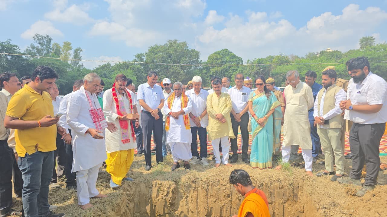 भूमि पूजन इस मौके पर भाजपा नेता सांसद प्रतिनिधि जनार्दन शर्मा, संजय गोविल, ज्ञानेंद्र राणा, कुंज बिहारी चतुर्वेदी आदि मौजूद रहे।