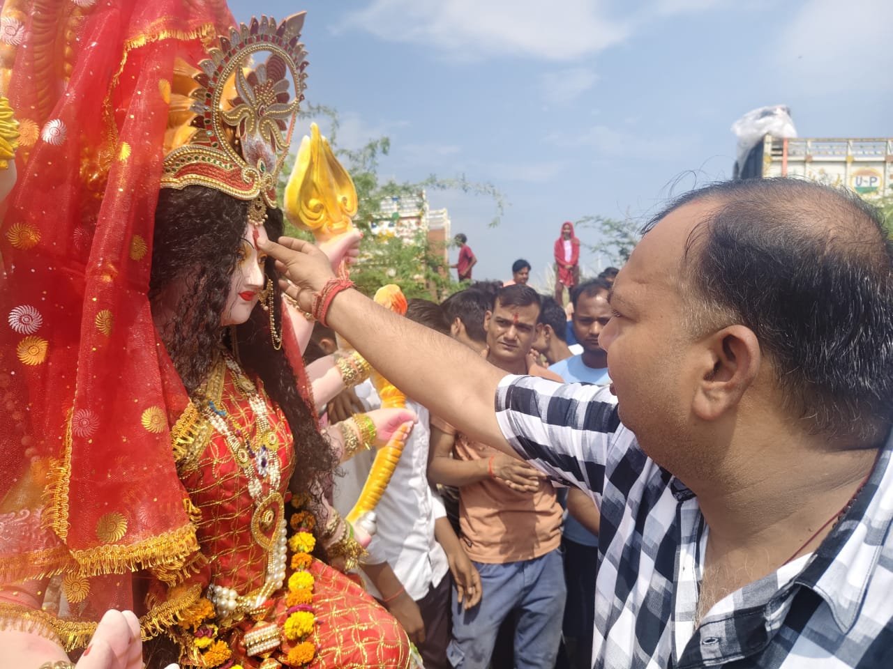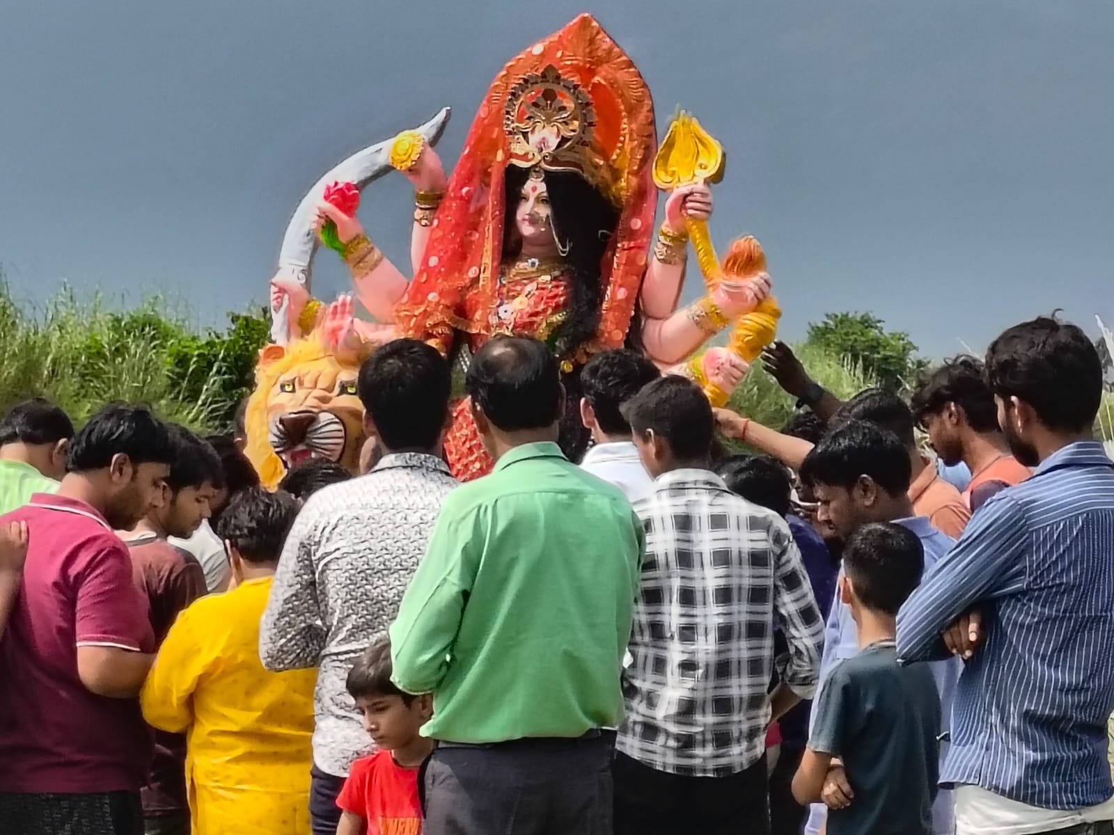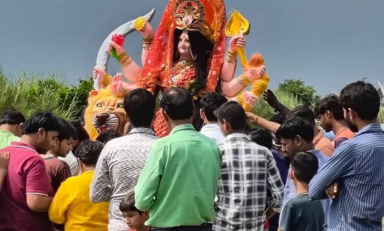 गांगसी पुल गंगा नहर में मां दुर्गा की मूर्ति का विसर्जन किया गया