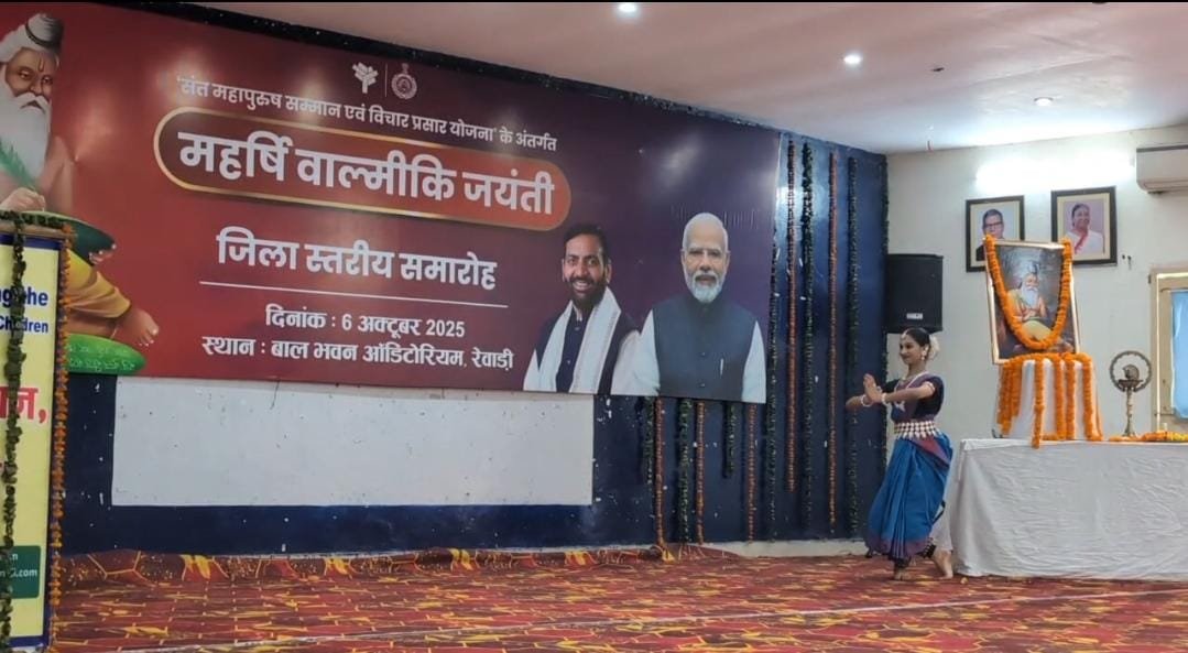 डा. वंदना पोपली ने कहा कि वाल्मीकि जी ने अपनी लेखनी से भगवान राम और सीता के आदर्शों को अमर बना दिया। इंजी. कृष्ण कुमार ने कहा कि सफाई कर्मचारी समाज की रीढ़ हैं और उन्हें अपने बच्चों की शिक्षा पर विशेष ध्यान देना चाहिए।समारोह में छात्रों ने मनोहारी सांस्कृतिक प्रस्तुतियाँ दीं। आरपीएस धारूहेड़ा की छात्रा निवेदया ने “श्रीरामचंद्र कृपालु भज मन” पर ओडिसी नृत्य प्रस्तुत किया, जिसके लिए विधायक ने उसे ₹11,000 का नकद पुरस्कार प्रदान किया। पीएम श्री राकवमावि की छात्राओं ने पर्यावरण संरक्षण पर समूह नृत्य पेश किया। प्रवक्ता सुधीर यादव ने महर्षि वाल्मीकि पर स्वरचित गीत प्रस्तुत किया और मंच संचालन भी किया।कार्यक्रम में सफाई योद्धाओं को उत्कृष्ट कार्य के लिए सम्मानित किया गया। समारोह में जिला समाज कल्याण अधिकारी रेनु बाला, बाल कल्याण अधिकारी वीरेंद्र यादव, सांस्कृतिक नोडल अधिकारी डा. ज्योत्स्ना यादव, प्रवक्ता पूनम यादव, एई अंकित वशिष्ठ, अधीक्षक उषा रानी, एआईपीआरओ अभिसार कौशिक, हिमांशु पालीवाल, सुनील ग्रोवर, सौरभ यादव, दीपा भारद्वाज, प्रशांत व नीरज सहित अन्य अधिकारी व कर्मचारी उपस्थित रहे।