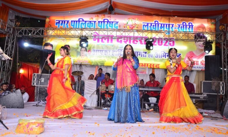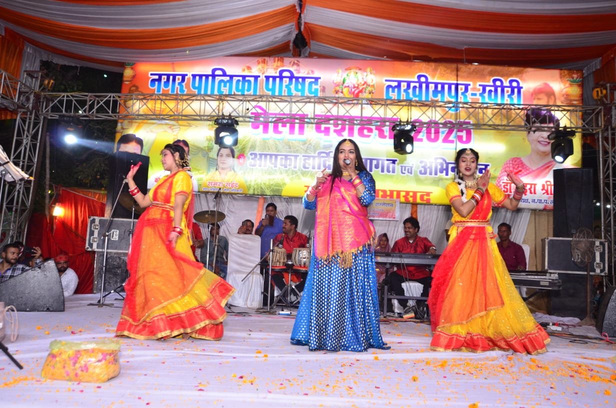 मुख्य अतिथि सीडीओ खीरी अभिषेक कुमार, पालिकाध्यक्षा डॉ. इरा श्रीवास्तव, ईओ संजय कुमार और अन्य विशिष्ट अतिथियों ने दीप प्रज्ज्वलित कर कार्यक्रम का शुभारंभ किया। मंच पर भोजपुरी प्रस्तुतियों के संग सुर संगीत की मधुर लहरें बिखेरते हुए लोकगायिका संजोली पाण्डेय की प्रस्तुति ने लोगों के दिलों में सुर और थिरकन का अमर अनुभव उकेरा। उनकी मधुर और जीवंत प्रस्तुतियों ने पूर्वांचल की समृद्ध सांस्कृतिक धरोहर को संजोते हुए दर्शकों को देर रात तक मंत्रमुग्ध रखा। उद्घाटन सत्र का संचालन समाजसेवी और साहित्यकार राम मोहन गुप्त ने किया। इस अवसर पर पारंपरिक रूप से पालिका परिषद द्वारा विभिन्न सामाजिक एवं सांस्कृतिक क्षेत्रों में योगदान देने वाले लोगों का सम्मान किया गया। जिनमें एमआर सुजीत गुप्ता, सचिन प्रभाकर, अवधेश प्रताप सिंह, रामज्ञान, आदर्श मिश्रा, प्रमोद सिंह, प्रदीप सक्सेना, परशुराम सनातनी सेना के संतोष मिश्रा, पुत्तन मिश्रा, रवि श्रीवास्तव, सुनील शुक्ला, कीर्ति शुक्ला, छठ पूजा समिति आपन माटी के सूबेदार सिंह, चेतन सिंह, मनोज श्रीवास्तव वैभव, संजय राय, आशीष चौबे, अंशू गौड़, मनोज राय, अरुण पाण्डेय, राजेश सिंह को सम्मानित किया गया। कार्यक्रम में विशिष्ट अतिथि के रूप में वरिष्ठ अधिवक्ता प्रीतम सिंह बग्गा, वरिष्ठ भाजपा नेता उमा शंकर मिश्रा दद्दू, समाजसेवी इंद्रेश गुप्ता, यदुलेश मुरारी सक्सेना, डॉ. पी के गुप्ता उपस्थित रहे। सम्मेलन का संयोजन सभासद विजय गुप्ता, अजय गुप्ता लकी, बृजेश पाल, अनिरुद्ध त्रिपाठी, राकेश कुमार के निर्देशन में हुआ। इस अवसर पर डॉ. प्रदीप गुप्ता, मेला अधिकारी समरा सईद, मेलाध्यक्ष कौशल तिवारी, श्वेता शर्मा, कुमुदेश्वर शंकर शुक्ला, इंजी. दुर्गेश वर्मा, दीपक रस्तोगी, बजरंग शर्मा, राकेश कश्यप आदि लोग सक्रिय रूप से उपस्थित रहे। उल्लेखनीय है कि मेला आयोजन समिति की व्यवस्थाओं, स्वच्छता और सुचारू संचालन की मुख्य अतिथि ने प्रशंसा की। अतिथियों का स्वागत पालिकाध्यक्षा डॉ. इरा श्रीवास्तव ने किया और आभार व्यक्त किया अधिशासी अधिकारी संजय कुमार ने। इस दशहरा मेले ने न केवल पुरातन परंपराओं का जीवंत प्रदर्शन किया, बल्कि यह भी दर्शाया कि संस्कृति, संगीत और समाज सेवा के माध्यम से कैसे एक समुदाय अपनी आत्मा और पहचान को उजागर कर सकता है। लखीमपुर के यह सांस्कृतिक आयोजन दर्शकों के लिए प्रेरणा और आनंद का अमूल्य स्रोत बन गया है।
