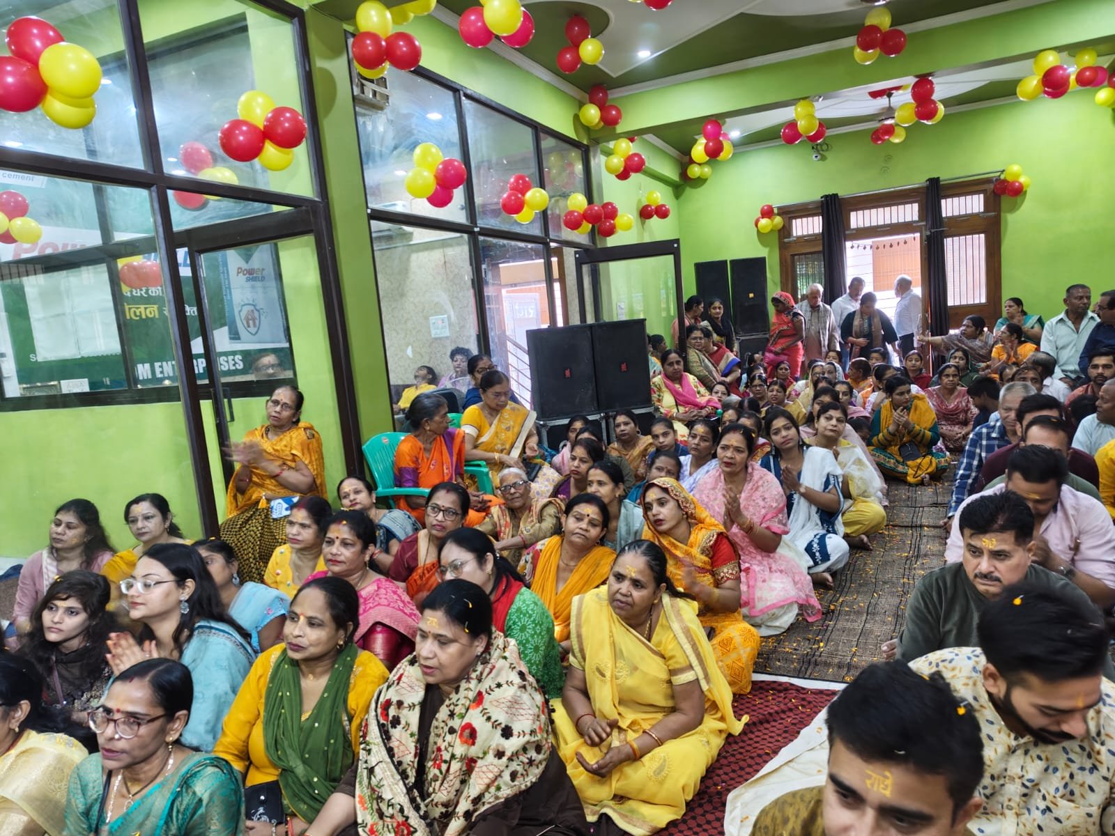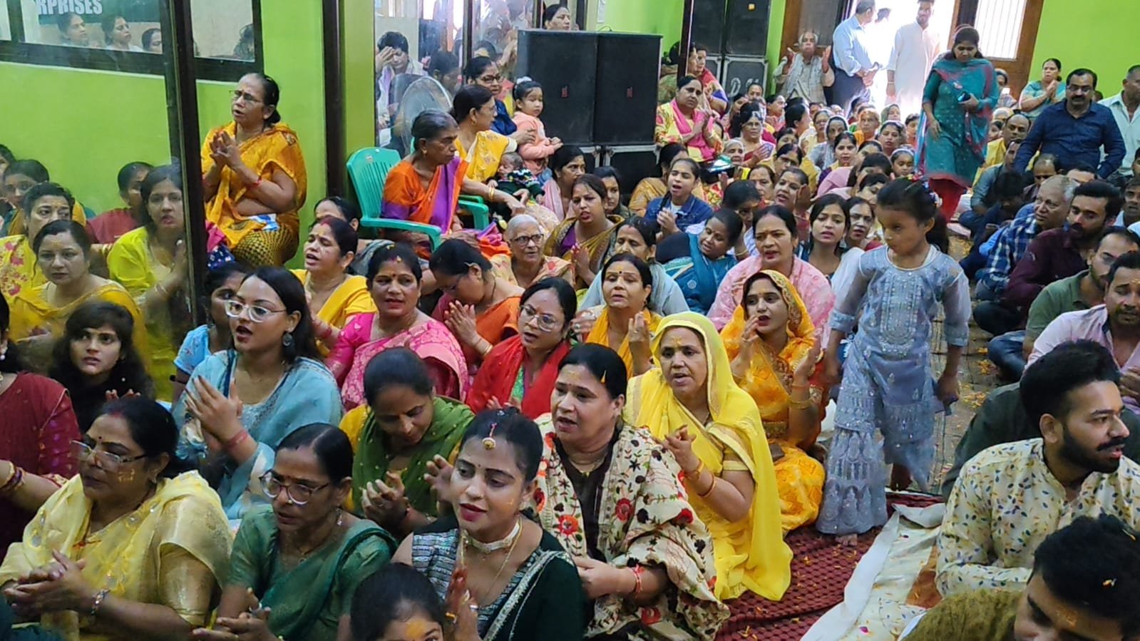 कटिया टोला स्थित रुचि-अभिषेक गुप्ता के घर उमड़ी भक्तों की अपार भीड़ ।