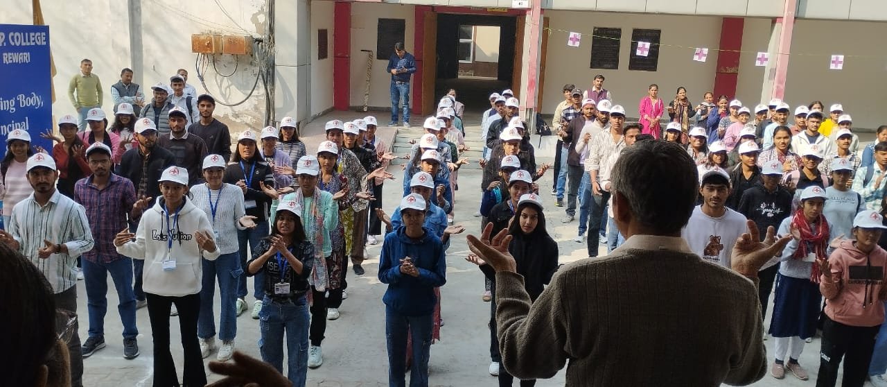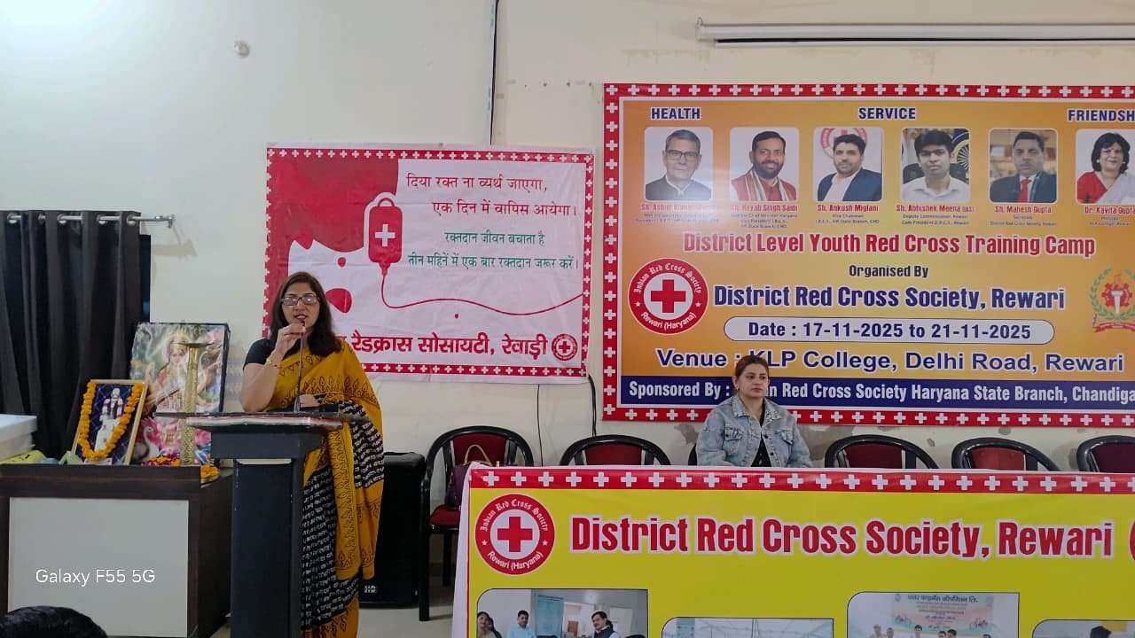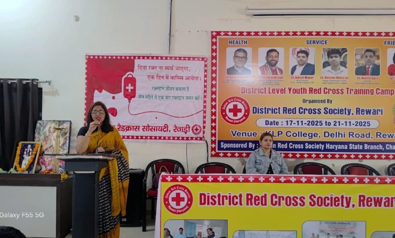 रेवाड़ी। के.एल.पी. कॉलेज में इंडियन रेड क्रॉस सोसाइटी, चंडीगढ़ एवं जिला रेड क्रॉस सोसायटी, रेवाड़ी के संयुक्त तत्वावधान में चल रहे यूथ रेड क्रॉस प्रशिक्षण शिविर के दूसरे दिन विभिन्न स्वास्थ्य एवं सामाजिक मुद्दों पर जागरूकता कार्यक्रम आयोजित किए गए। सभी सत्रों में बड़ी संख्या में विद्यार्थियों ने सक्रिय भागीदारी निभाई।