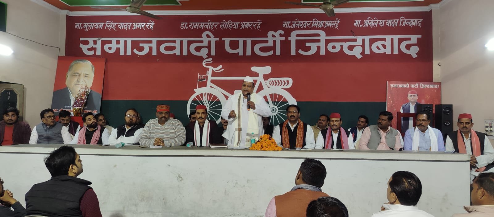 इस मौके पर सपा जिला महासचिव रंणजय सिंह यादव,सपा प्रदेश सचिव विजय सिंह, सपा अल्पसंख्यक सभा के प्रदेश प्रमुख महासचिव सैयद रिजवान अहमद, महानगर अध्यक्ष चौधरी रामकुमार भोजवाल,नगर विधानसभा अध्यक्ष अतिउल्लाह सिद्दीकी, ददरौल विधानसभा अध्यक्ष मुनेंद्र पाल सिंह यादव,तिलहर विधानसभा अध्यक्ष संदीप यादव, कटरा विधानसभा अध्यक्ष जितेंद्र पाल श्रीवास्तव, जलालाबाद विधानसभा अध्यक्ष सूरज पाल यादव, सपा जिला जिला उपाध्यक्ष संजीव कुमार वर्मा,सपा जिला उपाध्यक्ष ओंकार सिंह, सपा जिला उपाध्यक्ष जितेंद्र कुमार बाजपेई, सपा जिला उपाध्यक्ष मिश्रीलाल पटेल,सपा जिला उपाध्यक्ष अवधेश पाल,सपा महिला सभा की जिला अध्यक्ष किरन कठेरिया, कमल किशोर कठेरिया, जितेंद्र प्रसाद प्रधान,सपा महिला सभा की महानगर अध्यक्ष जफरीन,नीलम,नीरज मिश्रा, लखन प्रताप सिंह,नसीम खान, शमसुद्दीन सिद्दीकी, रऊफ खान, मोहम्मद अल्ताफ,प्रसून कुमार कनौजिया,हफीज अंसारी,संतोष कुमार पाल, मोहम्मद अजीज,मोनू कुरेशी,मोहम्मद जकी,महिपाल सिंह यादव,लल्ला सिंह यादव, खिज़र महबूब खान,सुमित कनौजिया,श्लोक मौर्य,यश मौर्य,दुर्गेश कुमार गुप्ता, नन्ही, सचिन दीक्षित,अनूप कुमार वर्मा, सावित्री पार्वती सैनी, राजकुमार शर्मा, पी. एल गौतम, विपिन यदुवंशी रामनिवास यादव,बलविंदर यादव, सर्वेश कुमार राठौर,नरवीर पाल, सरदार कलविंदर सिंह, सचिन कुमार,मानवेंद्र यादव उर्फ़ मोनू, बृजेश कुमार, विकास यादव, मोहित, रोहित कुमार कुशवाहा,राहुल राजपूत, शकील अहमद, विपिन यादव, रानू खान,महावीर सिंह यादव,धर्मवीर सिंह यादव,देवेंद्र कुमार मिश्रा एडवोकेट, जीशान,फुरकान खान,गुफरान खान, वसालतुल्ला खान, कमल मिश्रा मांगू, राजपाल भोज़वाल, राकेश विश्वकर्मा, असलम अंसारी,बलविंदर यादव,दुर्गेश यादव,आरती शुक्ला,राजेंद्र सिंह,विपिन यादव, परमजीत सिंह यादव, जितेंद्र कुमार पटेल,मनोज यादव,अरशद खान, वीरेंद्र यादव, सुबहान खान, नीरज कुमार, मनोज यादव,आदि मौजूद है….!
