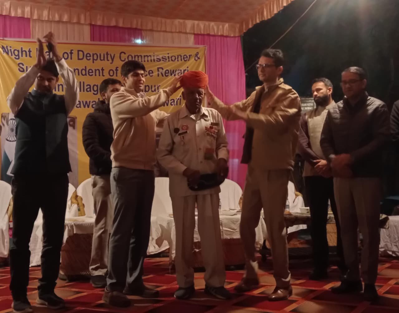 रेवाड़ी। हरियाणा के मुख्यमंत्री श्री नायब सिंह सैनी के निर्देशानुसार डीसी अभिषेक मीणा की अध्यक्षता में जिला प्रशासन द्वारा रेवाड़ी जिला के गांव मोहनपुर में सोमवार को रात्रि ठहराव जन संवाद कार्यक्रम का आयोजन हुआ। डीसी अभिषेक मीणा ने एसपी हेमेंद्र मीणा, एडीसी राहुल मोदी व एसडीएम मनोज कुमार सहित विभागीय अधिकारियों के साथ ग्रामीणों की शिकायतें सुनते हुए मौके पर ही समाधान सुनिश्चित किया। डीसी ने गांव के विकास से जुड़े ग्रामीणों के सुझावों को भी सुना। इस अवसर पर उन्होंने रेजांगला में शहीद हुए वीर जवान जयसिंह यादव की प्रतिमा स्थल पर जाकर उनको नमन किया। वहीं रेजांगला युद्ध में शामिल रहे कैप्टन रामचंद्र का सम्मान किया।इस मौके पर डीसी अभिषेक मीणा ने कहा कि हरियाणा के मुख्यमंत्री श्री नायब सिंह सैनी ने समाधान शिविर व रात्रि ठहराव कार्यक्रम का सभी वर्ग के लोगों को लाभ मिल रहा है। जिला प्रशासन के अधिकारी लोगों के घर द्वार पर जाकर उनकी समस्याएं सुनकर समाधान सुनिश्चित कर रहे हैं। उन्होंने कहा कि सरकार का प्रयास है कि प्रशासन जनता के घर द्वार तक पहुंचकर उनकी समस्याओं का मौके पर ही निवारण करवा रहे हैं। इसी उद्देश्य से रात्रि ठहराव कार्यक्रम चलाए जा रहे हैं।