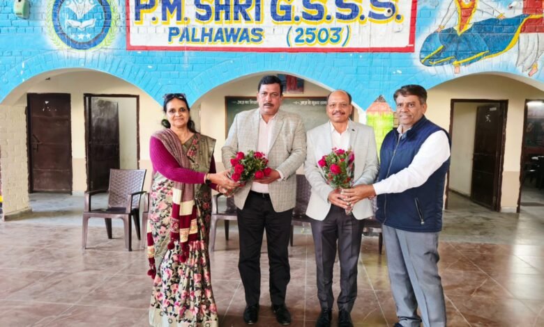 रेवाड़ी। शहीद रविंद्र कुमार पीएम श्री राजकीय वरिष्ठ माध्यमिक विद्यालय पाल्हावास में जिला शिक्षा अधिकारी रेवाड़ी बिजेंद्र हुड्डा और जिला मौलिक शिक्षा अधिकारी प्रदीप दहिया का विद्यालय पहुंचने पर प्राचार्य शोभा भारद्वाज और स्टाफ के सभी सदस्यों ने स्वागत किया।