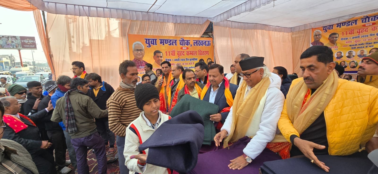 लखनऊ। कड़ाके की ठंड के बीच युवा मंडल चौक ने लगातार 11वें वर्ष ‘नर सेवा नारायण सेवा’ के तहत 1600 कंबल और गर्म टोपियों का वितरण गरीब-जरूरतमंदों को किया।कार्यक्रम में अलाव, गर्म चाय और बिस्कुट की भी व्यवस्था रही। मुख्य अतिथि माननीय विधायक डॉ. नीरज बोरा , पार्षद अनुराग मिश्रा,अन्नू , मनोज अग्रवाल, अतुल गुप्ता, संजीव, राजेश भरत, दीपक, पंकज , संरक्षक राधे मोहन, गिरिराज किशोर महिला मंडल से रितु ,लता, मोनिका ऊषा सहित बहुत से गणमान्य लोग उपस्थित रहे। युवा मंडल संगठन ने कहा, यह सेवा पिछले एक दशक से निरंतर चल रही है और समाज के कमजोर वर्गों को सर्दी से राहत देने का प्रयास है।