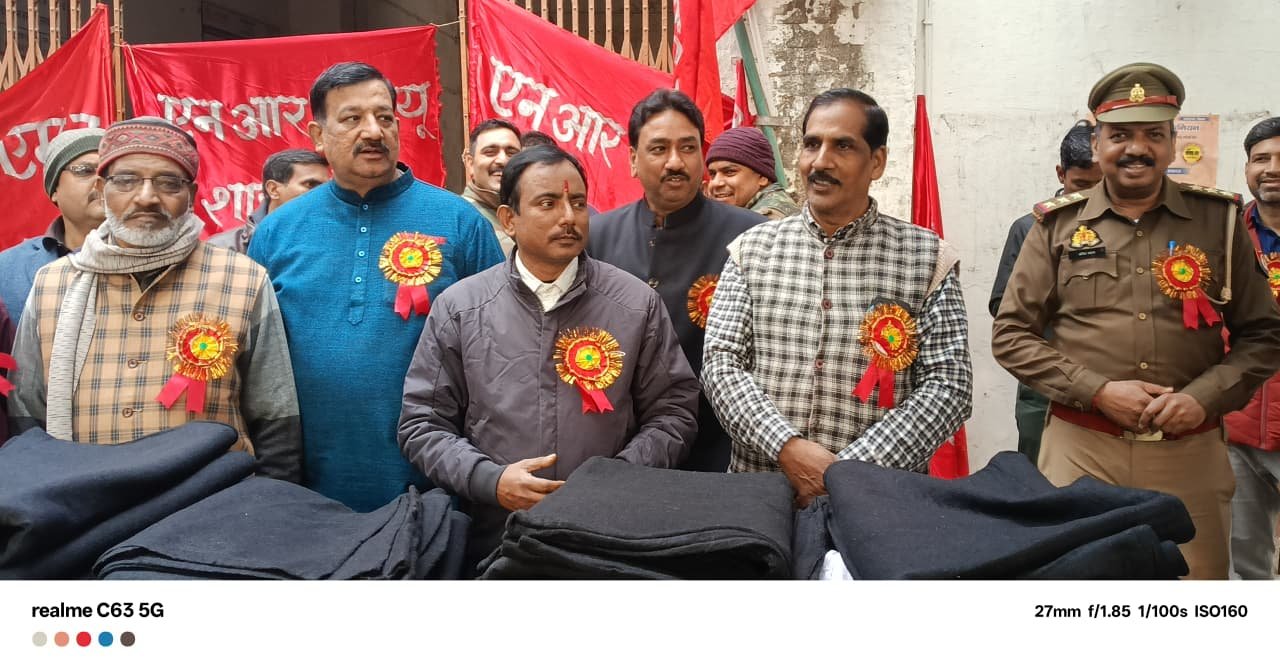 नव वर्ष के अवसर पर नॉर्दर्न रेलवे मेंस यूनियन द्वारा रेलवे स्टेशन पर कुलियों वेंडरों सफाईकर्मियों दैनिकमजदूरों को कम्बल वितरण किया गया सभी कर्मचारियों के आपसी सहयोग से 200 से अधिक कम्बल वितरित किए गए नरमू के सहायक मंडल मंत्री नरेंद्र कुमार त्यागी ने बताया कि प्रत्येक वर्ष नरमू द्वारा रेलवे में दैनिक आय पर काम करने वाले रेल यात्रियों की सेवा करने वाले कुली वेंडर ठेकामजदुर सफाईकर्मियों आदि को कम्बल वितरण कर नववर्ष मनाया जाता है इस वर्ष भी यह कार्यक्रम आयोजित किया गया है शाखा सचिव शिव कुमार सक्सेना ने बताया कि इस कार्य में संगठन से जुड़े कर्मचारियों के साथ इंचार्ज भी सहयोग करते है इस अवसर पर मुख्य रूप से स्टेशन अधीक्षक पी एस तोमर जीआरपी इंचार्ज अनिल प्रकाश आरपीएफ इंचार्ज जितेंद्र कुमार मुख्य स्वास्थ्य निरीक्षक त्रिलोकचंद्र शशांकपांडे सीएमआई एस के ठाकुर एसएससी आनंद कुमार सिंह मधूकर सिंग टीएनसी बी एस बिष्ट विकास द्विवेदी सुनीलसिंह सैफ खान जितेंद्र जयपालसिंह लालाराम भारतीय युवा चेतना मंच से जुड़े रामरक्षपाल प्रदीपमिश्रा नीरजपाठक गोपालजी वर्मा दिनेश श्रीवास्तव पुष्पेंद्रसिंह आदि उपस्थित रहे सभी अतिथियों का शाखा अध्यक्ष रामोतार शर्मा द्वारा बैज लगाकर स्वागत किया गया