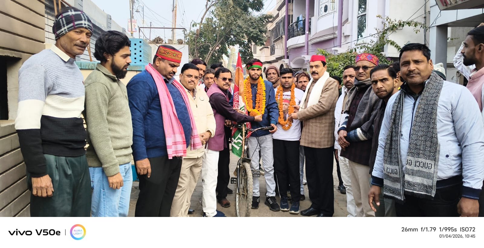 जो कल दिनांक 3 जनवरी 2026 को जनपद शाहजहांपुर नगर निगम स्थित टाउन हॉल के पास पहुंचने पर सपा जिला अध्यक्ष एवं पूर्व चेयरमैन श्री तनवीर खान के नेतृत्व में फूल माला पहनाकर जोरदार स्वागत किया गया और रात्रि विश्राम शाहजहांपुर में ही कराया गया और आज दिनांक 4 जनवरी 2026 को सुबह 10:00 बजे जनपद लखीमपुर खीरी के मैगलगंज के लिए सपा जिला अध्यक्ष एवं पूर्व चेयरमैन श्री तनवीर खान सहित पार्टी के सभी नेताओं व पदाधिकारीयों ने फूलमाला पहनाकर रवाना किया….!