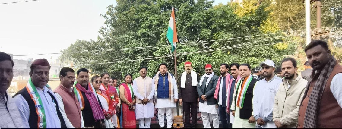 सपा जिलाध्यक्ष ने गणतंत्र दिवस पर पार्टी कार्यालय पर फहराया तिरंगा, एकता का दिया संदेश।