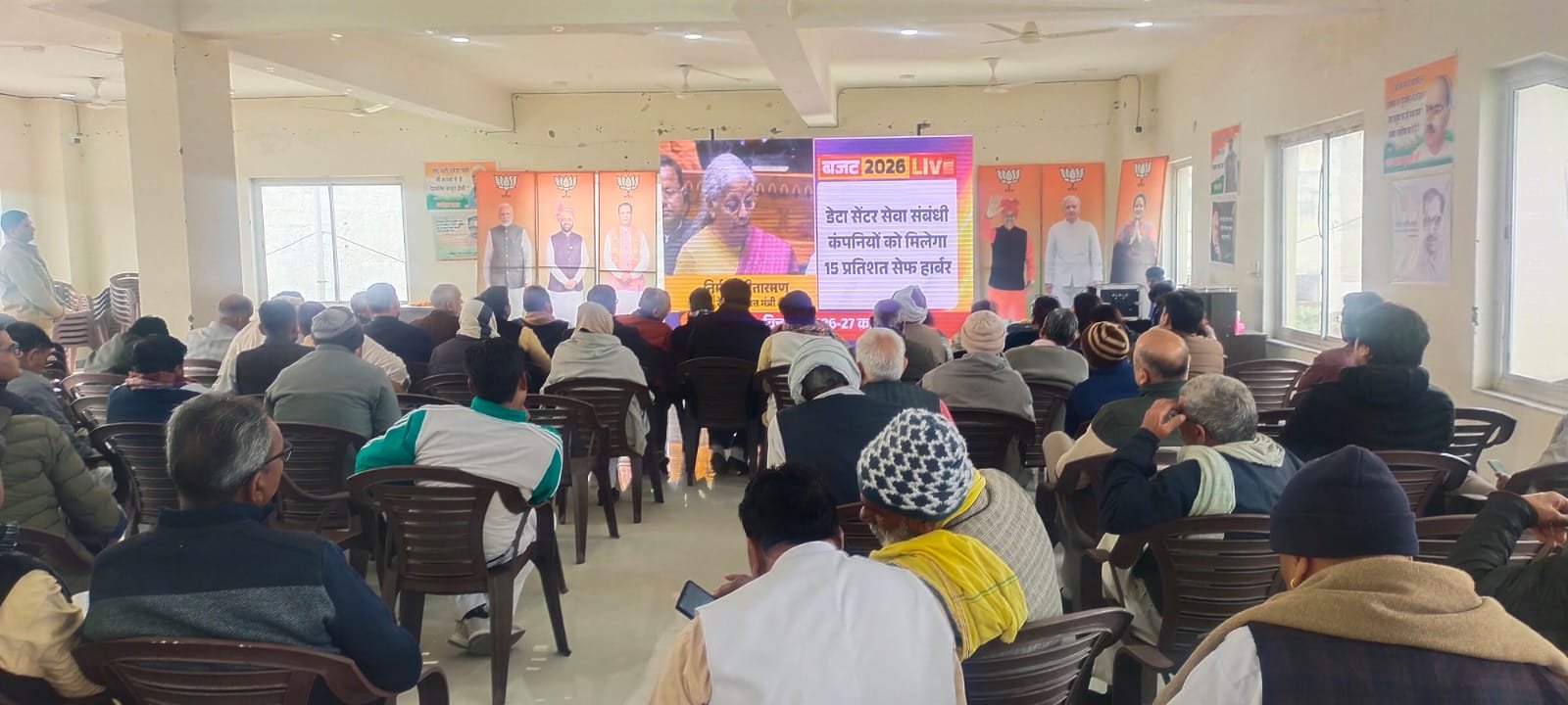 रेवाड़ी। केंद्रीय बजट 2026-27 के अवसर पर भारतीय जनता पार्टी के रेवाड़ी जिला मुख्यालय में लाइव प्रसारण को लेकर भव्य कार्यक्रम का आयोजन किया गया। कार्यक्रम का नेतृत्व जिला अध्यक्ष डॉ. वंदना पोपली ने किया। इस दौरान पार्टी पदाधिकारियों, कार्यकर्ताओं और गणमान्य नागरिकों ने वित्त मंत्री निर्मला सीतारमण द्वारा संसद में प्रस्तुत बजट को बड़ी स्क्रीन पर देखा।