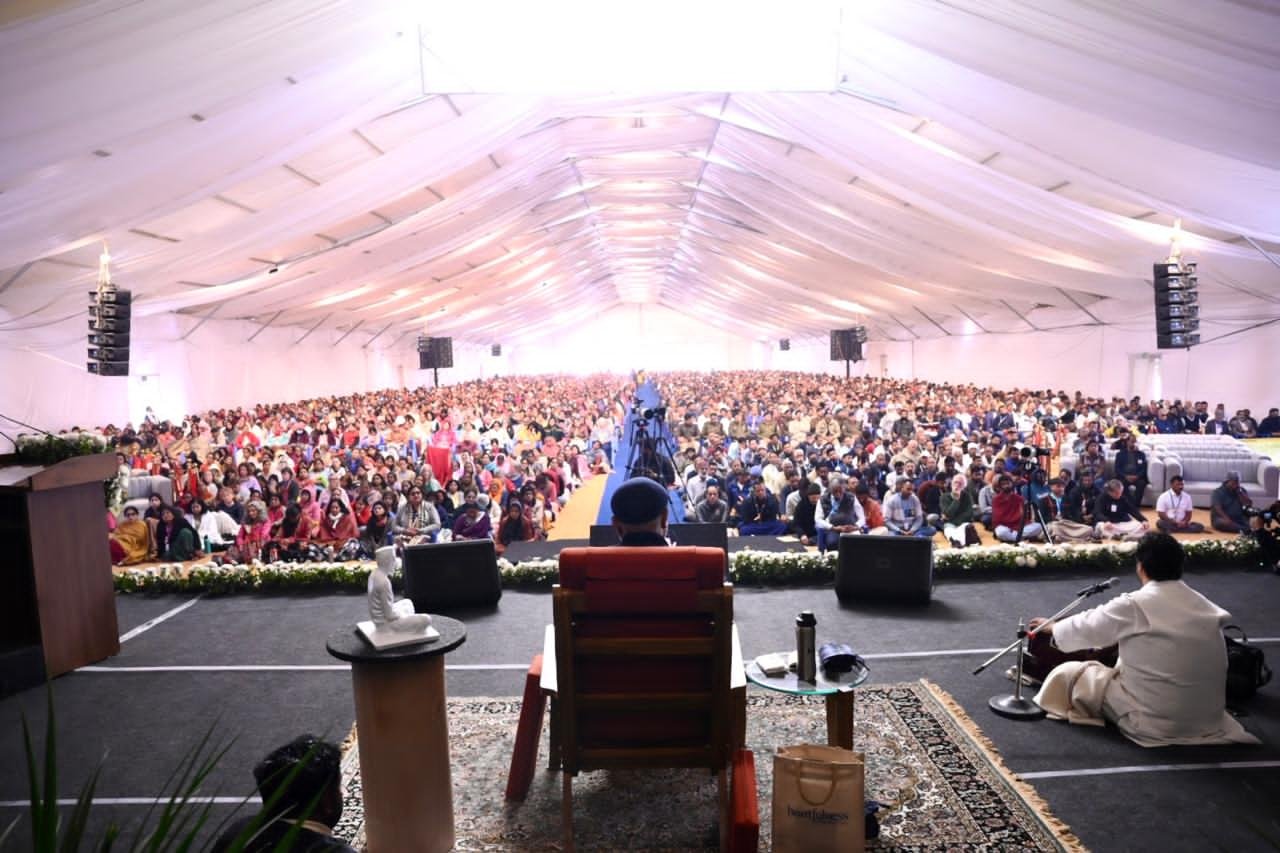 इस अवसर पर पूज्य दाजी ने अपने संदेश में बाबूजी महाराज के वचनों का स्मरण कराते हुए कहा कि आत्मा अपनी जंजीरों से मुक्त होना चाहती है, और यही सर्वोच्च स्तर की महत्वाकांक्षा का स्वरूप है। हम वही बनना चाहते हैं, जो वास्तव में हम हैं, किंतु जिसे हम विस्मृत कर बैठे हैं। बाबूजी महाराज ने स्पष्ट रूप से निर्देश दिया है कि हमारा लक्ष्य ईश्वर के साथ पूर्ण रूप से एकमय होना है और जब तक ध्येय की प्राप्ति न हो, तब तक विश्राम नहीं करना चाहिए। लक्ष्य के प्रति जागरूकता बनी रहे तो आलस्य स्वयं ही पराजित हो जाता है। ध्यान सत्र के उपरांत मिशन के अभ्यासी एवं ख्यातिलब्ध भजन गायक चरन प्रीत ने अपने मधुर स्वर और संगीत से “सजा दो घर गुलशन सा मेरे सरकार आए हैं” तथा “लालाजी की याद में हम सब खो जाएँ” जैसे भावपूर्ण भजनों की प्रस्तुति दी, जिससे पूरा पंडाल भक्ति और अध्यात्म की रसधारा में सराबोर हो उठा।
