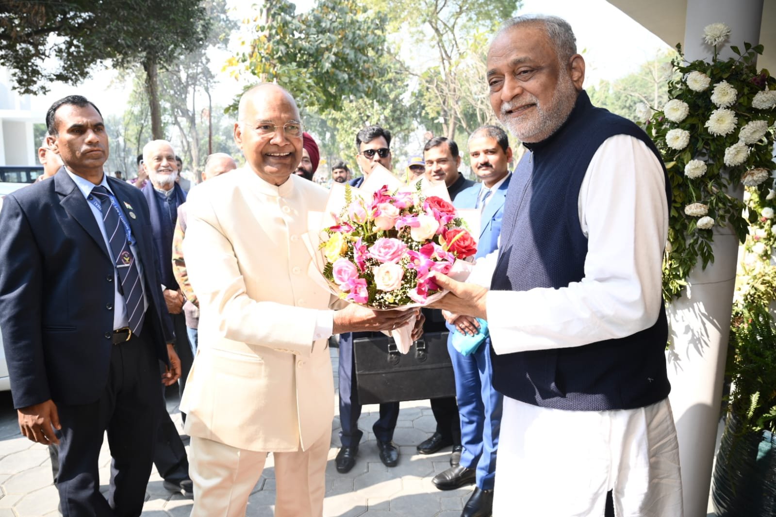 शाहजहांपुर। श्री रामचन्द्र मिशन आश्रम में चल रहे बसन्त उत्सव में आज देश के पूर्व राष्ट्रपति रामनाथ कोविंद भी अपने तीन दिन के प्रवास पर ध्यान साधना करने पहुंचे। रिलायंस में बने हैलीपैड में जब उनका हैलीकॉप्टर पहुंचा तो यहां जिला अधिकारी धर्मेन्द्र प्रताप सिंह व पुलिस अधीक्षक राजेश द्विवेदी ने उनका स्वागत किया। यहां से पूर्व राष्ट्रपति भारी काफिले के साथ आश्रम पहुंचे। यहां पहुंचने पर उनका मिशन के सचिव उमा शंकर बाजपेई,संयुक्त सचिव अर्जुन अग्रवाल, श्री गोपाल अग्रवाल, केंद्र प्रभारी सर्वेश चंद्रा, राज गोपाल अग्रवाल आदि ने उनका स्वागत किया। पूर्व राष्ट्रपति श्री कोविंद ने आश्रम पहुंचकर पूज्य दाजी को पुष्पगुच्छ भेंटकर अभिनंदन किया।इसके बाद पूर्व राष्ट्रपति श्री कोविंद ने पूज्य दाजी से मुलाकात की और ध्यान किया।
