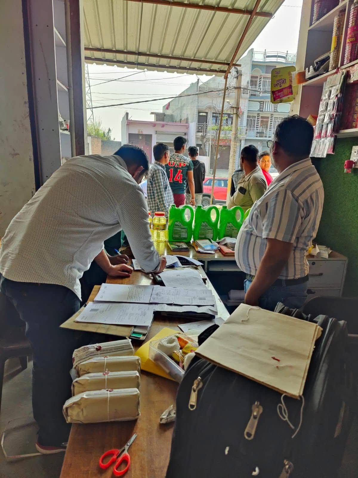894 लीटर तेल सीज, 2 नमूने जांच को भेजे, 25 पेटी नूडल्स व 110 किलो नमकीन नष्ट