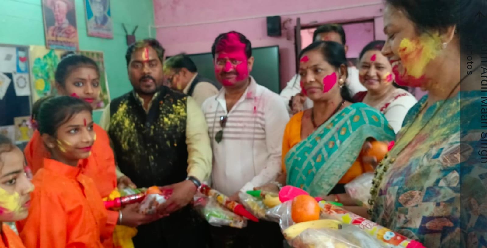 मुख्य अतिथि के रूप में मौजूद रहे एडीएम एफ/आर अरविंद कुमार :: जनपद की समाज सेवी संस्था सहयोग के पदाधिकारियो ने महानगर के किला मोहल्ले में स्थित कस्तूरबा विद्यालय पहुंचकर सभी बच्चों के साथ होली के पर्व बड़े ही धूमधाम से को मनाया और सभी छात्राओं को मिठाई , रंग पिचकारी सहित गिफ्ट बाटे । कार्यक्रम में मुख्य अतिथि के रूप में पहुंचे एडीएम एफ/आर अरविंद कुमार ने कहा कि हमको जनपद में हर जगह सहयोग संस्था के कार्य दिखाई दे रहे हैं , यह संस्था बहुत ही अच्छा कार्य कर रही है । और वाकई में त्योहारों को एक दूसरे के साथ मनाने पर आनंद ही बढ़ जाता है । वैसे भी शाहजहांपुर की होली अलग ही है , जिसका जिक्र पूरे देश में होता है । और सभी छात्राओं को समझाते हुए कहा कि शिक्षा वह शेरनी का दूध है,जिसको जो पीता है वह शेर की तरह दहाड़ता है , इसलिए सभी बच्चों पढ़ाई पर अपना पूरा ध्यान दो । इस मौके पर संस्था के संस्थापक अनिल गुप्ता प्रधान ब शाहनवाज खा एडवोकेट ने कहा कि हमारी संस्था जनहित के सभी कार्यों को सदैव करती रहेगी , संस्था की अध्यक्ष रजनी गुप्ता, महासचिव विकास सक्सेना ब कोषाध्यक्ष महेंद्र दुबे ने बताया कि इस कार्यक्रम के बाद हमारा अगला कार्यक्रम राजकीय बाल गृह एवं एक छोटे से गांव सुंदर नगर में संपन्न होगा । और हमारी संस्था होली पर्व की खुशियां सभी बच्चों के साथ बिखेरने का एक छोटा सा प्रयास करेंगी । कार्यक्रम में संस्था की स्तुति गुप्ता , संगीता गुप्ता ,सुमन गुप्ता, ममता यादव सहित कस्तूरबा गांधी आवासीय बालिका विद्यालय की प्रधानाचार्य अर्चना बिश्नोई ब सुचिता सिंह ,ममता आर्य , ज्योति सक्सेना ,मेनका राठौर, सुधा वर्मा ,आराधना श्रीवास्तव, आरती गौतम आदि सभी उपस्थित रही ।।