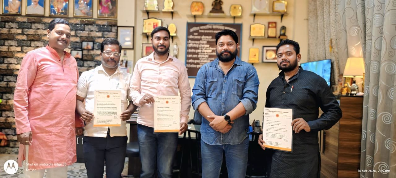 वाराणसी- अखिल भारतीय कायस्थ महासभा के युवा संभाग को राष्ट्रव्यापी स्तर पर मजबूती देने और संगठन की कार्यकुशलता बढ़ाने के उद्देश्य से आज वाराणसी स्थित ‘समर्पण’ कार्यालय पर राष्ट्रीय कार्यकारिणी का विस्तार किया गया संगठन के शीर्ष नेतृत्व की सहमति और वरिष्ठ पदाधिकारियों के मार्गदर्शन में युवा टीम में नई ऊर्जा का संचार किया गया है।इस अवसर पर राष्ट्रीय अध्यक्ष (युवा संभाग) अभिनव श्रीवास्तव व वरिष्ठ उपाध्यक्ष अतुल श्रीवास्तव जी ने नई जिम्मेदारियों की घोषणा की।यह मनोनयन राष्ट्रीय अध्यक्ष चौधरी जितेन्द्र नाथ सिंह एवं राष्ट्रीय महामंत्री अजय श्रीवास्तव ‘नीलू’जी की विशेष सहमति से संपन्न हुआ।नई नियुक्तियां इस प्रकार रही जिसमे मनीष कुमार श्रीवास्तव राष्ट्रीय उपाध्यक्ष.नवीन कुमार श्रीवास्तव. राष्ट्रीय मंत्री.अमित कुमार श्रीवास्तव राष्ट्रीय मंत्री.
