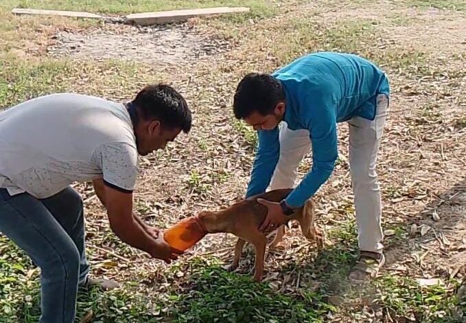 जानकारी के अनुसार, बेवर थाना क्षेत्र के रोड किनारे एक कुत्ता भटक रहा था, जिसके सिर में एक प्लास्टिक का डिब्बा बुरी तरह फंसा हुआ था। डिब्बा फंसने के कारण कुत्ता पिछले कई घंटों से न तो कुछ खा पा रहा था और न ही पानी पी पा रहा था। भूख-प्यास और दम घुटने की वजह से वह तड़पते हुए इधर-उधर भाग रहा था।