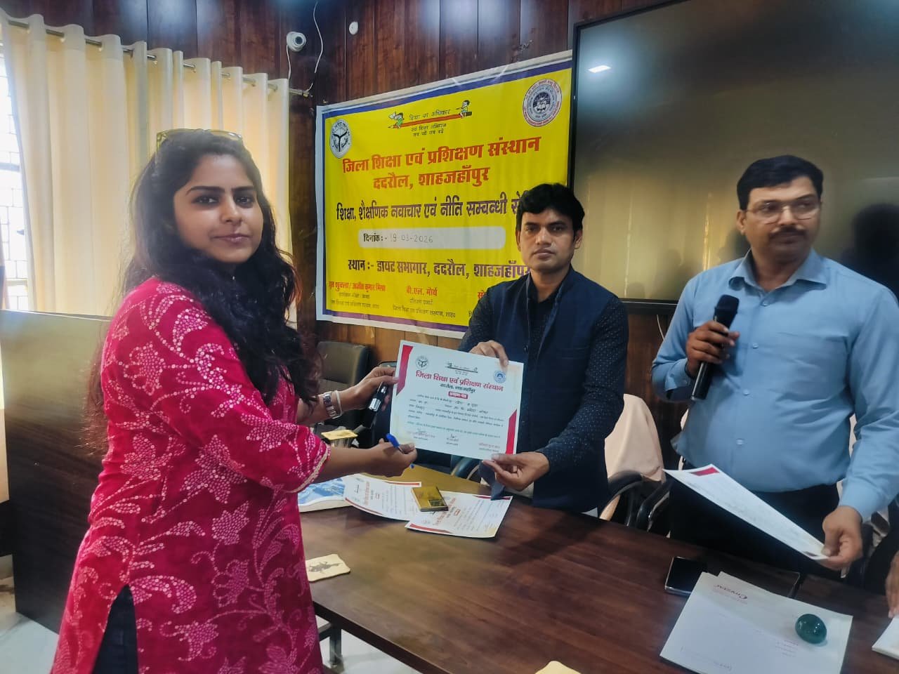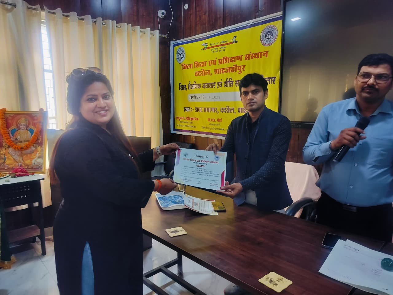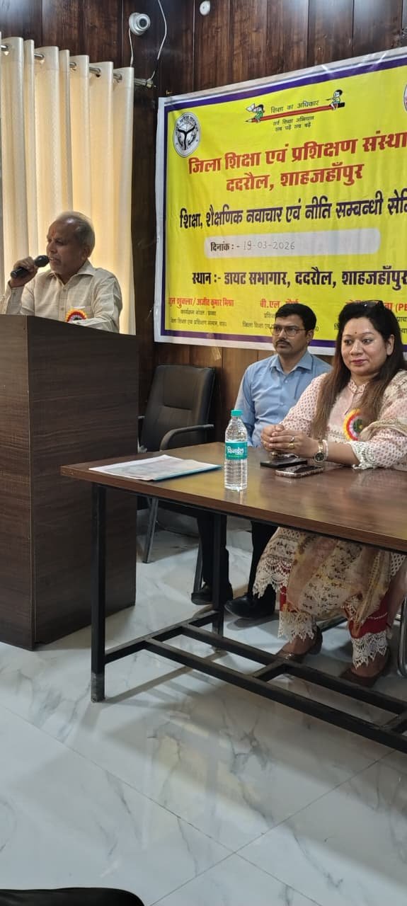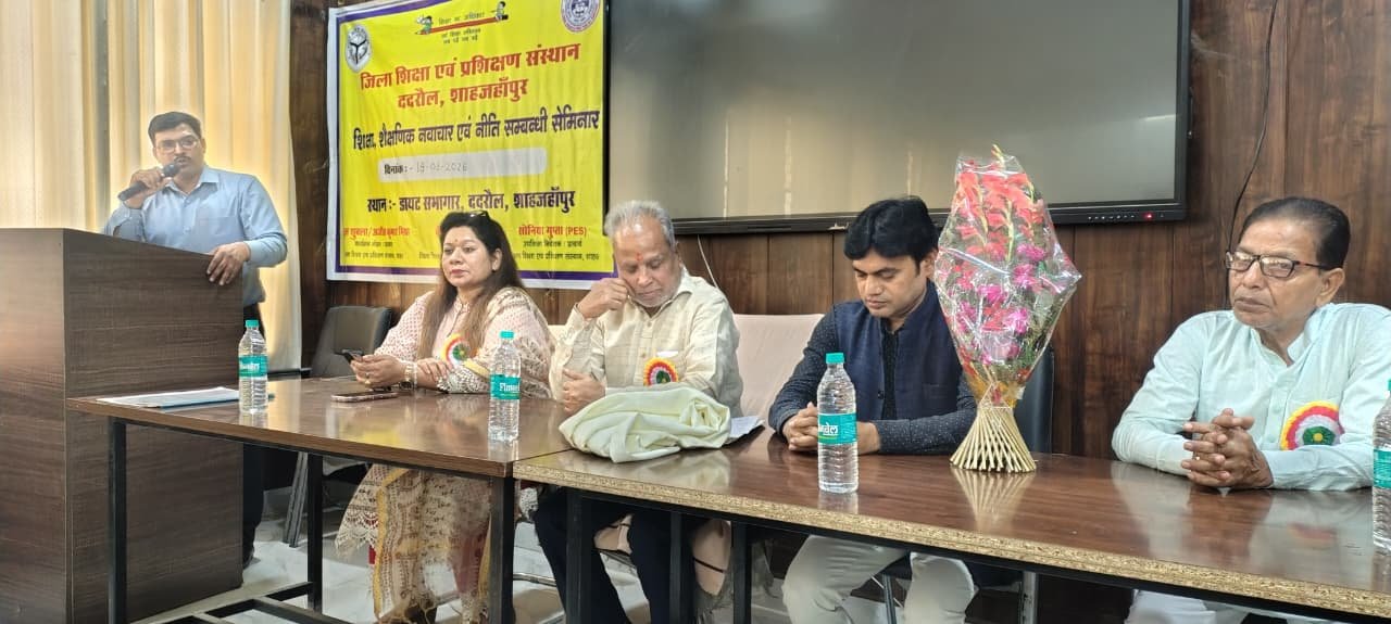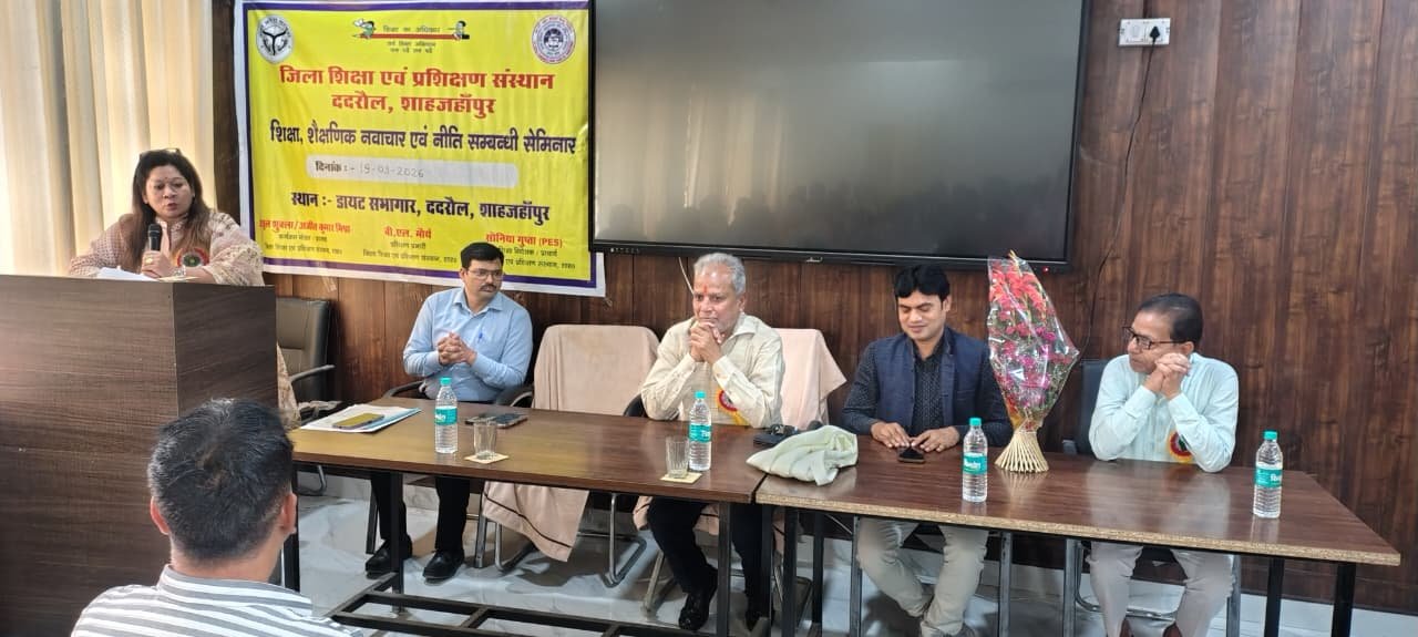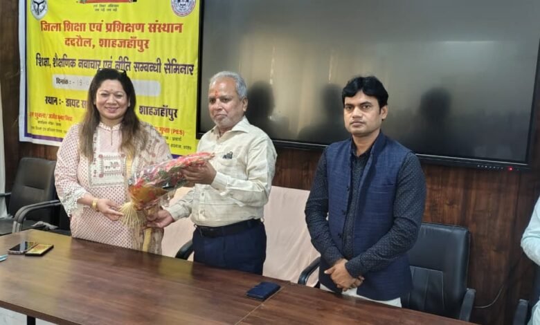 शाहजहांपुर। आज जिला शिक्षा एवं प्रशिक्षण संस्थान ददरौल शाहजहांपुर में शासन के निर्देशों के अनुसार डायट प्राचार्य डॉक्टर सोनिया गुप्ता के निर्देशन में शिक्षा ,शैक्षिक नवाचार ,एवं नीति संबंधी विषय पर एक सेमिनार का आयोजन किया गया जिसका शुभारंभ एसएस कॉलेज के पूर्व प्राचार्य एवं सचिव डॉ अवनीश कुमार मिश्रा जी एवं प्राचार्य महोदय के द्वारा मां सरस्वती की प्रतिमा पर माल्यार्पण एवं दीप प्रज्वलन करके किया गया इस अवसर पर मुख्य अतिथि एवं मुख्य वक्ता के रूप में पधारे डॉक्टर अवनीश मिश्रा जी ने सेमिनार पर अपने विचार रखते हुए कहा की नवाचार से ही देश को प्रगति के मार्ग पर ले जाया जा सकता है तथा इन नवाचारों की भूमि हमारे विद्यालयों की कक्षाएं ही हैं जहां पर शिक्षक के द्वारा बच्चों में चिंतन समालोचना एवं विश्लेषण जैसे गुणों को आरोपित करते हुए उन्हें प्रतिभावान नागरिक के रूप में तराशा जाता है इसलिए शिक्षकों को चाहिए की अपने विद्यालयों में छात्रों को चिंतन एवं विश्लेषण के भरपूर अवसर उपलब्ध कराए