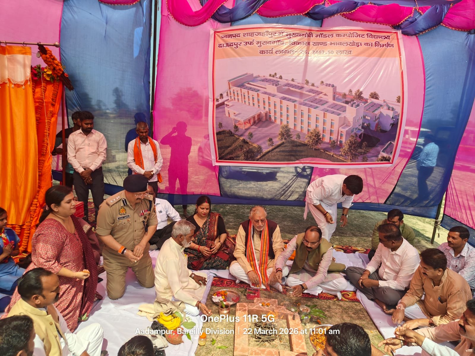 कार्यक्रम में सांसद अरुण कुमार सागर,जिला पंचायत अध्यक्ष #ममता यादव,राजाराम ब्लॉक प्रमुख भावलखेड़ा,वीरेंद्र पाल सिंह यादव,पूर्व अध्यक्ष जिला पंचायत,अजय प्रताप यादव पूर्व अध्यक्ष जिला पंचायत,प्रेम कुमार, ग्राम प्रधान की गरिमामयी उपस्थिति में संपन्न किया गया। कार्यक्रम में धर्मेंद्र प्रताप सिंह जिलाधिकारी शाहजहाँपुर, डॉ० अपराजिता सिंह सिनसिनवार मुख्य विकास अधिकारी शाहजहांपुर, दिव्या गुप्ता जिला बेसिक शिक्षा अधिकारी शाहजहांपुर एवं अन्य समस्त अधिकारी कर्मचारी का उपस्थित रहें। मुख्यमंत्री मॉडल कंपोजिट विद्यालय को कार्यदायी संस्था उत्तर प्रदेश प्रोजेक्ट्स कारपोरेशन लि0 इकाई-06, बरेली के द्वारा निर्माण कराया जाएगा।