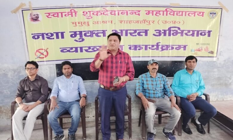 शाहजहांपुर। स्वामी शुकदेवानंद कॉलेज की एनसीसी एवं एनएसएस इकाई के संयुक्त तत्वाधान में नशा मुक्त भारत अभियान के तहत एक गोष्ठी का आयोजन किया गया। आयोजन का उद्देश्य विद्यार्थियों को नशे के दुष्प्रभावों के प्रति जागरूक करना था। इस अवसर पर कार्यक्रम की अध्यक्षता करते हुए कॉलेज के प्राचार्य प्रोफेसर आर के आजाद ने कहा कि युवाशक्ति किसी भी राष्ट्र की सबसे बड़ी पूंजी होती है। यदि युवा वर्ग नशे जैसी घातक प्रवृत्तियों से दूर रहकर अपने लक्ष्य के प्रति समर्पित रहे, तो देश की सतत प्रगति सुनिश्चित है। उन्होंने विद्यार्थियों से आह्वान किया कि वे स्वयं नशे से दूर रहें और समाज में भी इसके प्रति जागरूकता फैलाने का संकल्प लें।