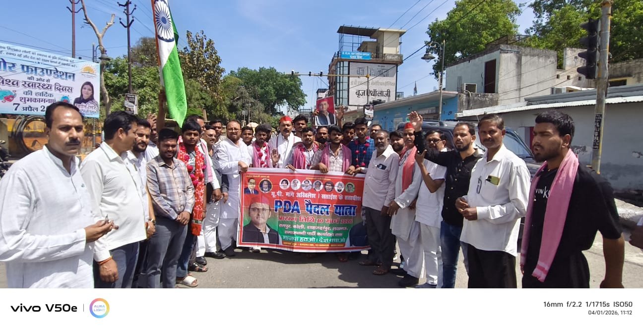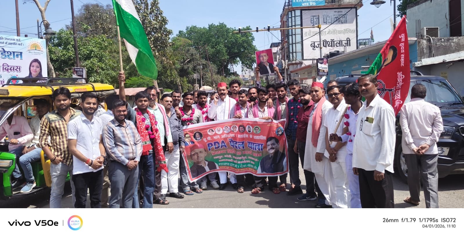 इसी के तहत आज दिनांक 1 अप्रैल 2026 को PDA समाजवादी पैदल यात्रा जनपद शाहजहांपुर पहुंची जहां सपा जिला अध्यक्ष एवं पूर्व चेयरमैन तनवीर खान के नेतृत्व में पार्टी के नेताओं व पदाधिकारीयों एवं कार्यकर्ताओं ने फूल माला पहनाकर जोरदार स्वागत कर PDA समाजवादी पदयात्रा को जनपद हरदोई के लिए रवाना किया।